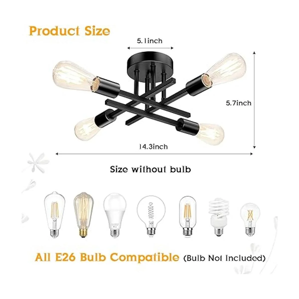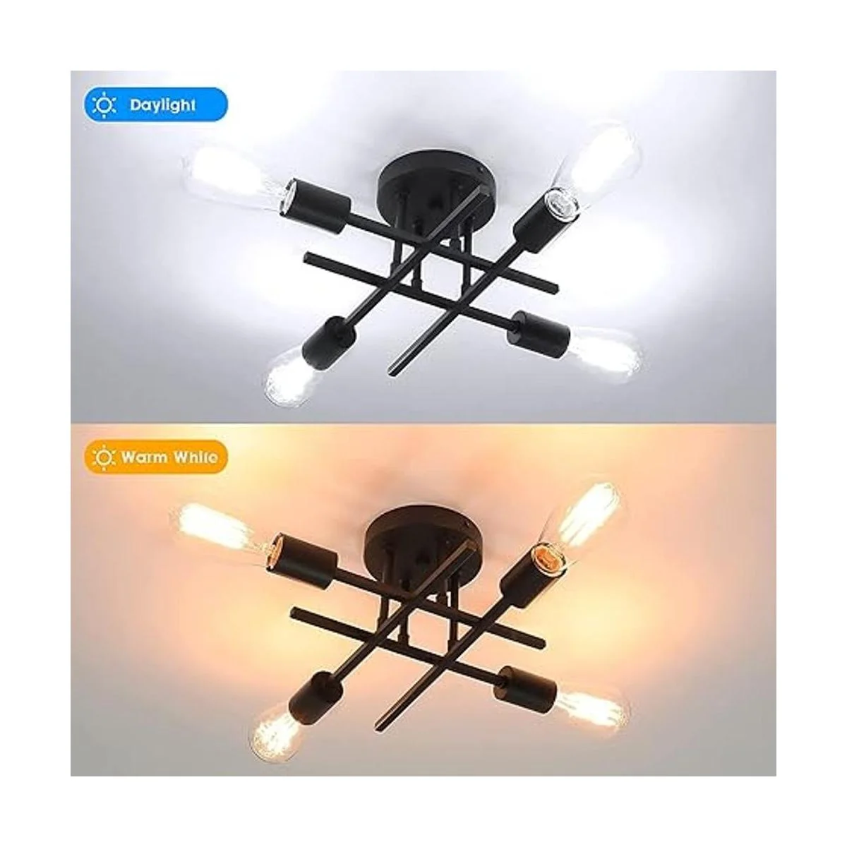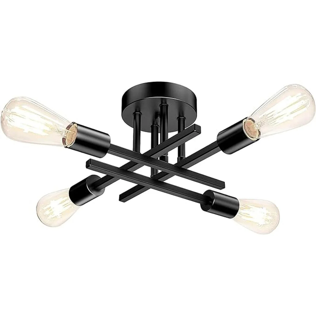 Lámpara de techo semiempotrada color negro mate, moderna Sputnik cerca de la luz del techo, lámpara de araña para dormitorio, cocina, sala de estar, comedor, 4 luces E26 enchufe