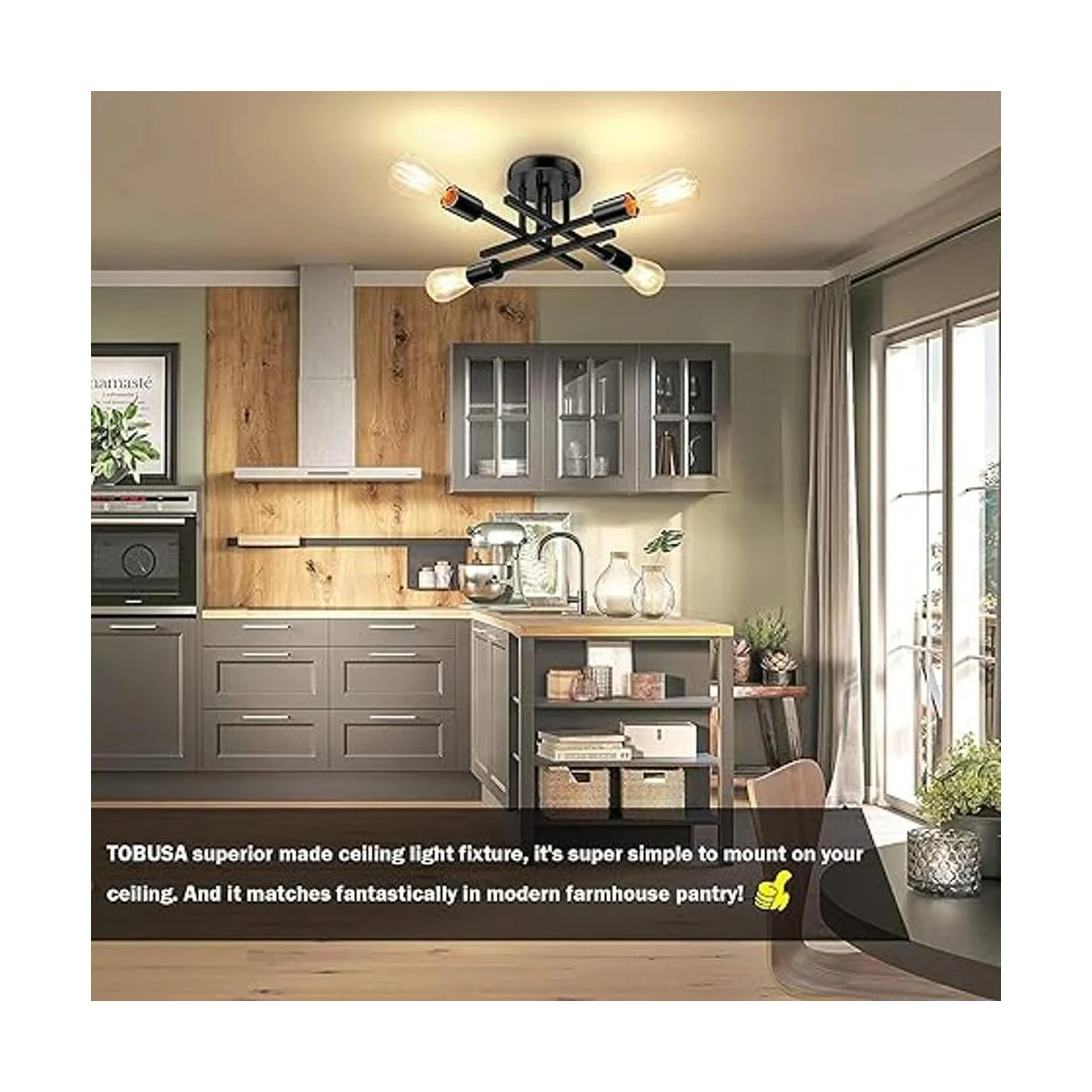 Estilo vintage y moderno de granja: lámpara de araña semiempotrada TOBUSA con aspecto elegante y rústico, tiene un aspecto retro rústico antiguo y se adapta a la decoración moderna del hogar. Puede combinar con diferentes estilos de hogar, como mediados de siglo, moderno, contemporáneo, industrial. Es definitivamente la mejor opción para la iluminación y decoración de tu hogar