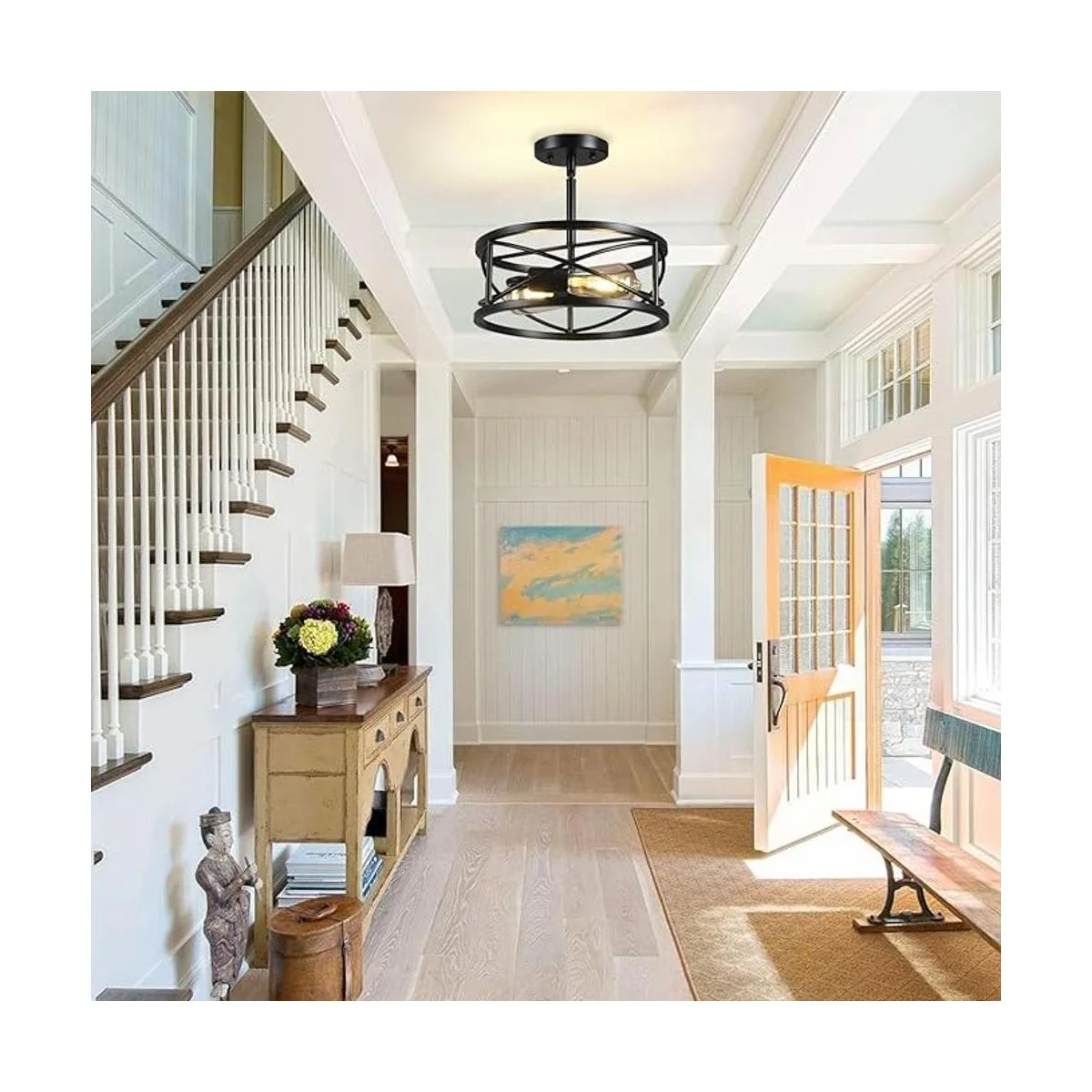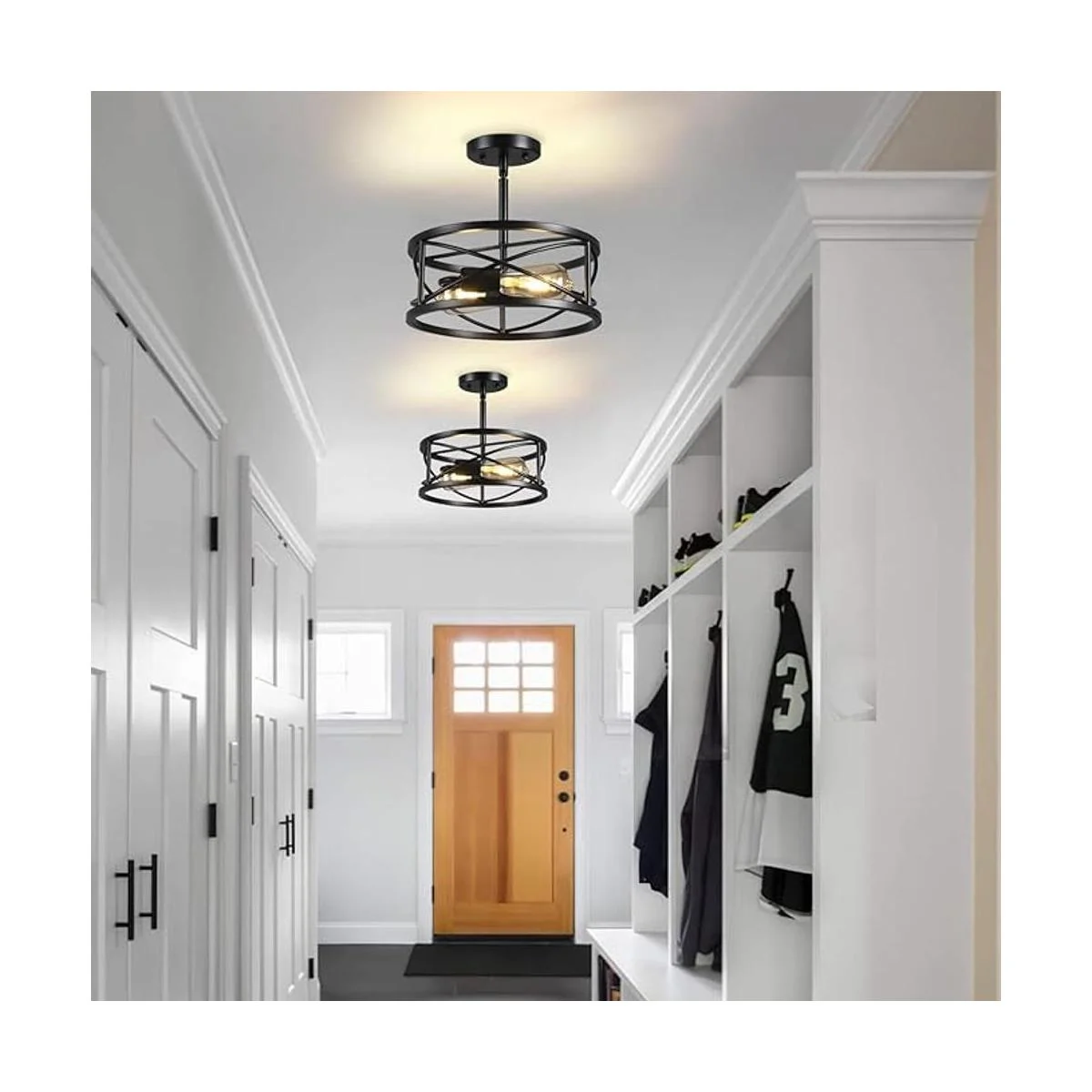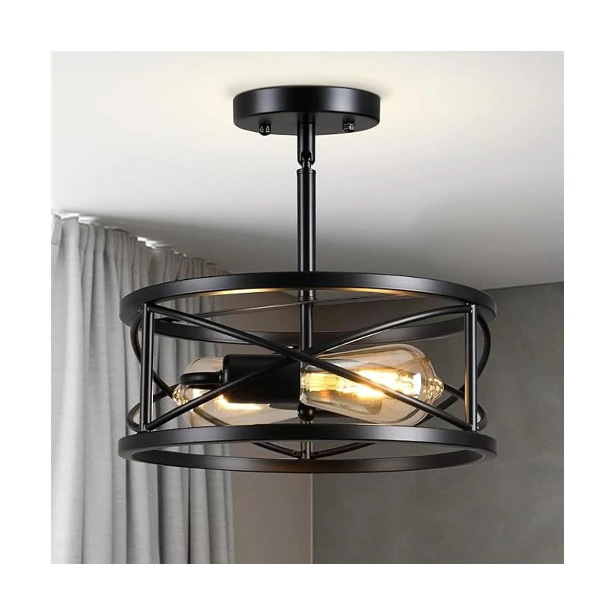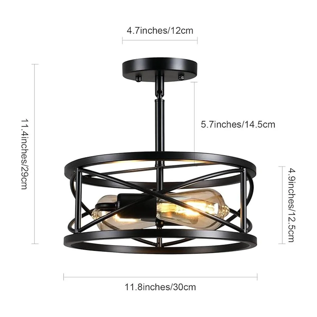 Lámpara de techo semiempotrada de 11.8 pulgadas D11.8 pulgadas, lámpara de techo inclinada industrial negra, lámpara de techo de jaula de metal vintage para cocina, pasillo, entrada, lavandería, dormitorio