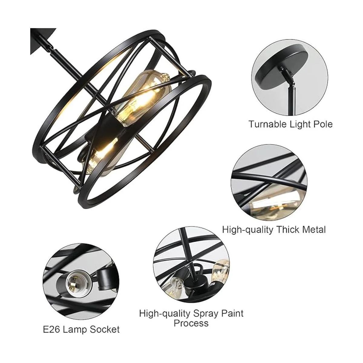 Estilo industrial vintage: esta lámpara de techo industrial está hecha de metal grueso de alta calidad, que está hecha por soldadura, pulido, barniz para hornear y otras manualidades de alta gama. No se oxida fácilmente, fácil de limpiar y duradero.