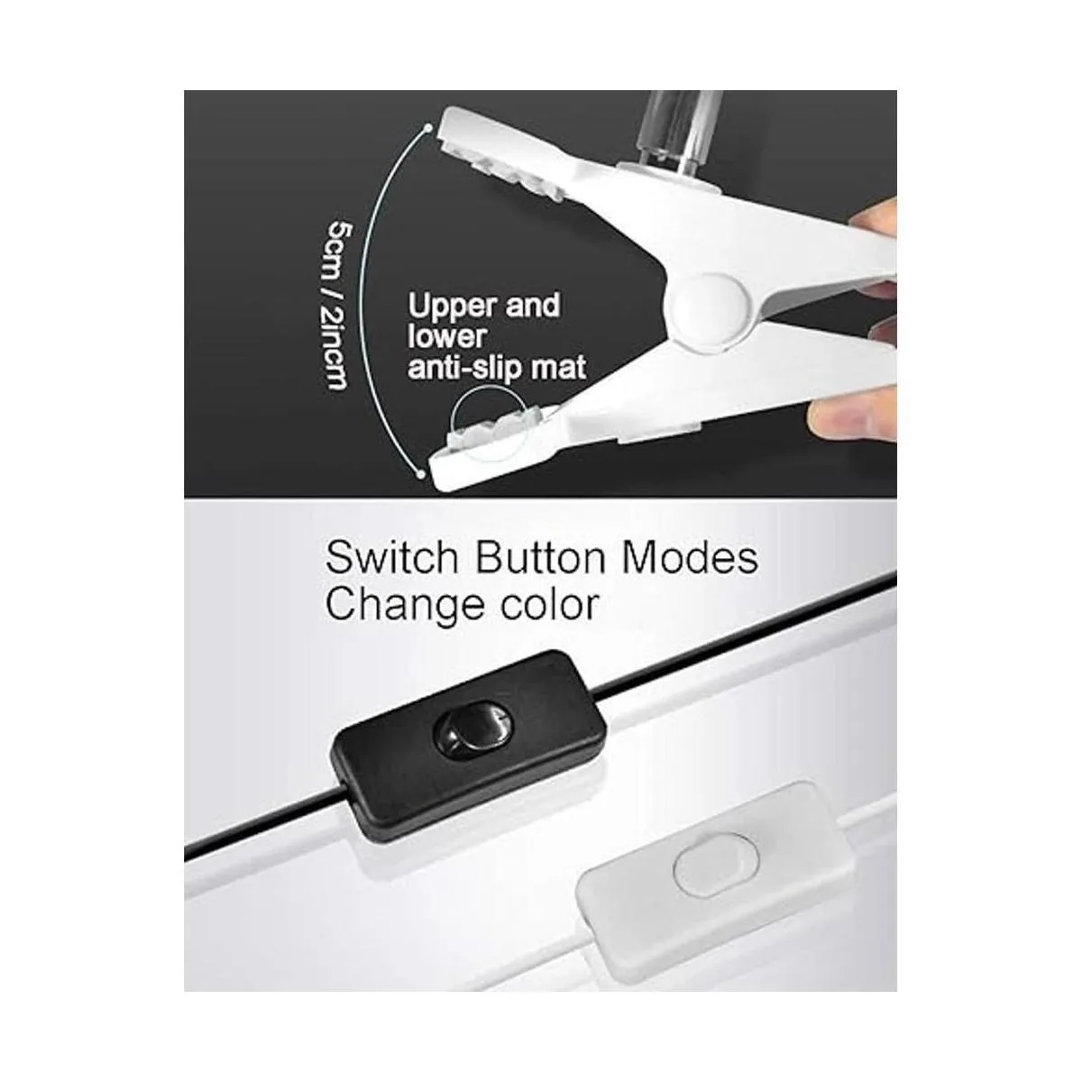 Luz de mesa de ahorro de energía y protección ocular: la fuente de luz LED consume hasta un 85 menos de energía y dura 20 veces más que las bombillas incandescentes. La lámpara de clip emite una fuente de luz suave para el cuidado de los ojos, sin parpadeo, luz antirreflejos sin fantasma para aliviar la fatiga ocular al leer. Y diseño de superficie de luces de abrazadera sin parpadeo, sin luz mareada, sin luz azul, sin sombra para evitar la fatiga ocular.