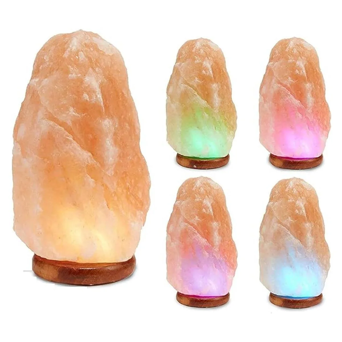 Hecho a mano: anidadas en una base de madera, las lámparas de sal LED del Himalita cambian de color están talladas a mano con roca de sal del Himalaya 100 rosa pura, manteniendo la forma natural.