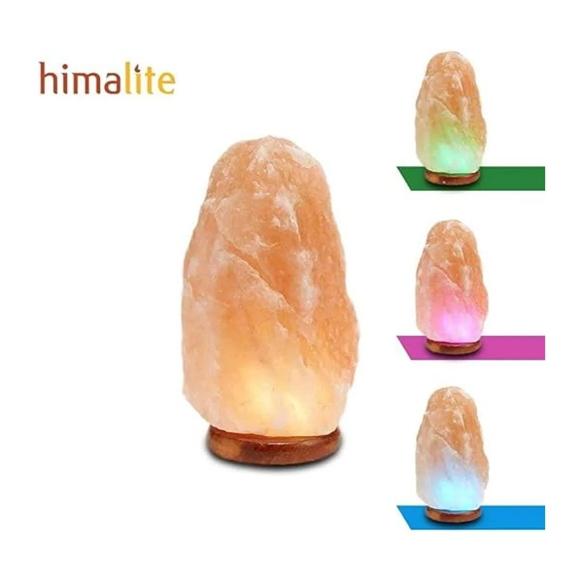 Lámpara LED multicolor de sal pura del Himalaya cambiante de 7 pulgadas de alto con adaptador USB y base de madera del Himalite Carnival of Lights