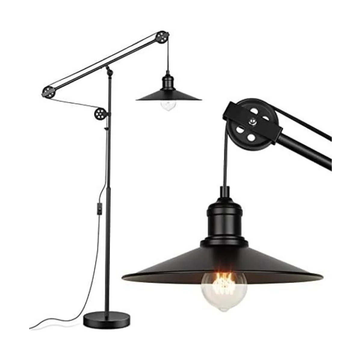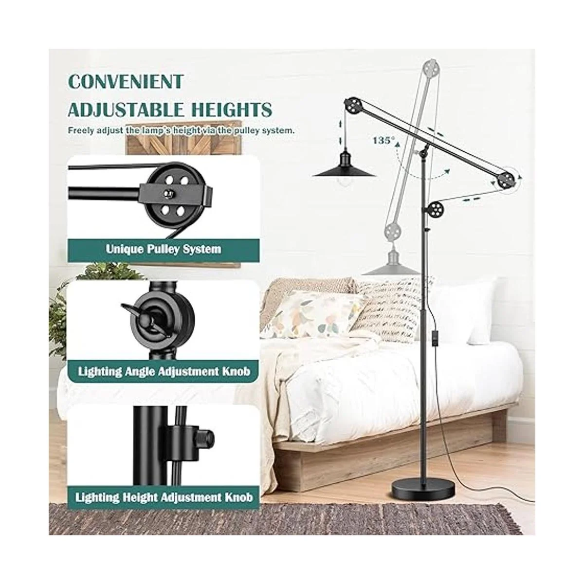Diseño de polea ajustable: el sistema de polea y el brazo de contrapeso te permiten ajustar fácilmente la altura de la pantalla de acabado negro. Sostener la cuerda permite que la sombra se mueva hacia arriba y hacia abajo. La altura de la lámpara y el ángulo del brazo que la sostiene son ajustables para que el soporte se ajuste a la altura perfecta por encima de la silla de lectura para obtener luz. Esta lámpara de pie de granja realmente ilumina la habitación bastante bien y creará una iluminación cómoda y espacio junto al sofá, escritorio, silla de libro, mesa auxiliar o cama.