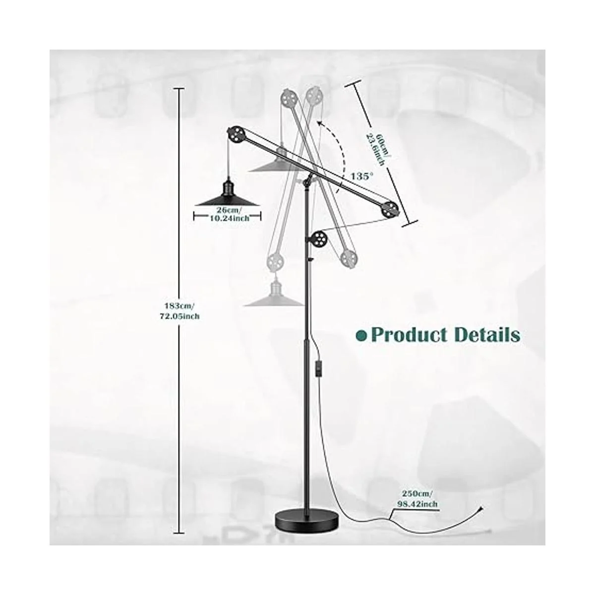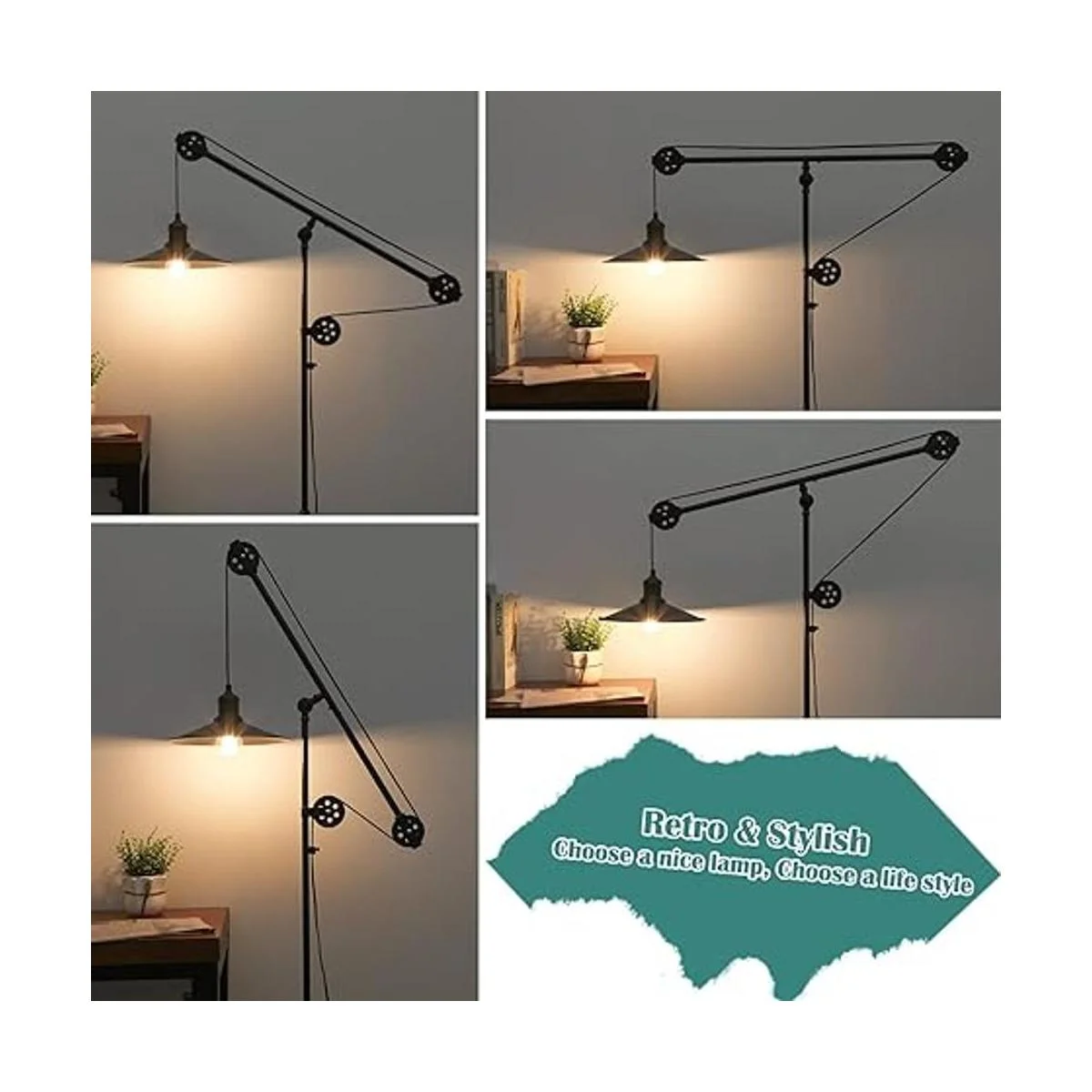 Un único y llamativo La lámpara de pie industrial con aspecto vintage y rústico encaja perfectamente en cualquier habitación, desde mediados de siglo moderna hasta decoración tradicional. El aspecto general y la sensación de las lámparas de pie de polea te harán sentir elegante, acogedor en casa en cualquier espacio. Incluso si la lámpara no tiene luz en absoluto, puedes simplemente tratarla como una escultura porque es tan estéticamente agradable. Cuando alguien entra en la habitación, está en su atención definitivamente irá directamente a la lámpara de pie de tarea ajustable.