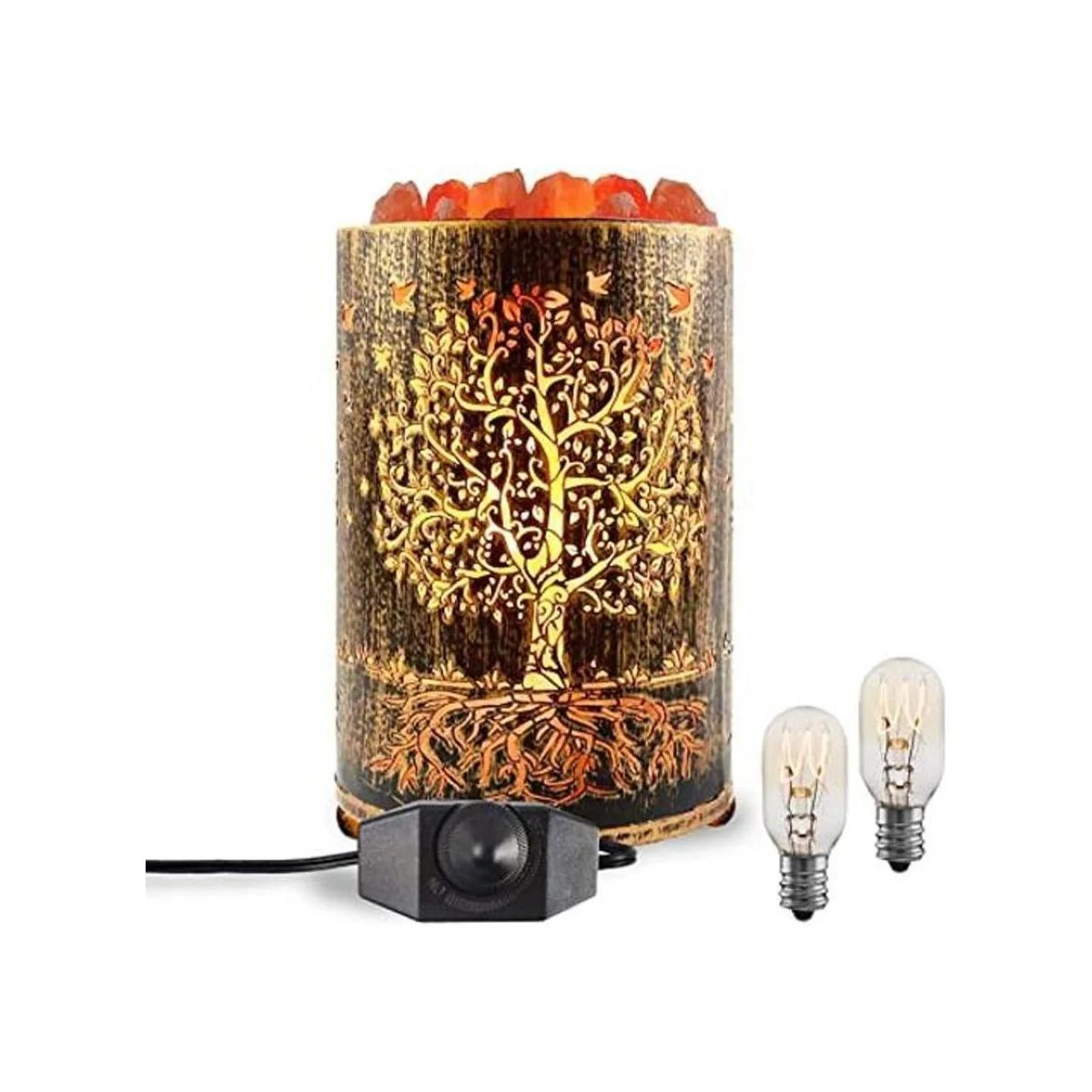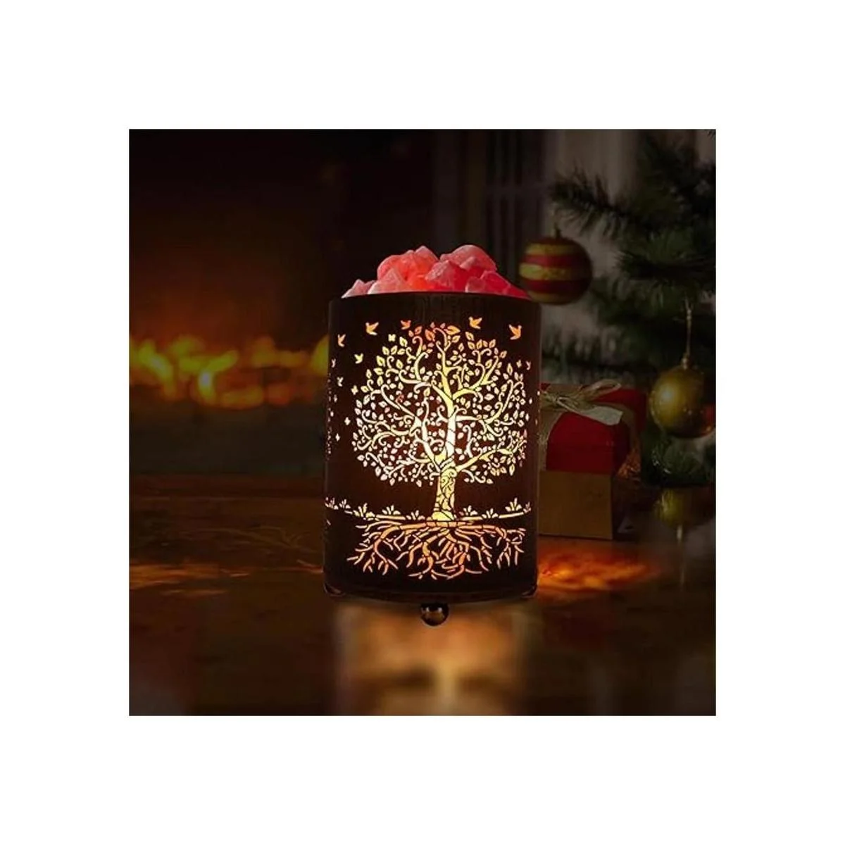 Cesta de metal vintage: cesta de metal de bronce retro con patrón hueco del árbol de la vida. La unidad de metal que rodea la roca de sal no se calienta demasiado. Proyectará puntos de luz en la pared para crear una ilusión de bosque