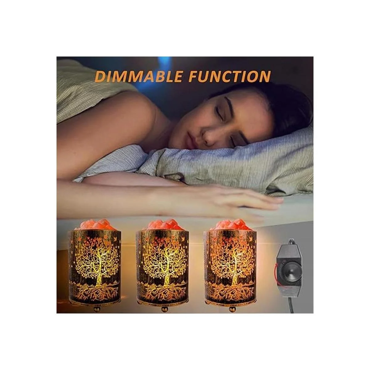Lámparas de sal de noche, lámpara de roca de sal del Himalaya con interruptor de atenuación, lámpara de cesta de sal del árbol de la vida, lámpara de escritorio de cristal de sal retro con bombillas de repuesto de 15 W