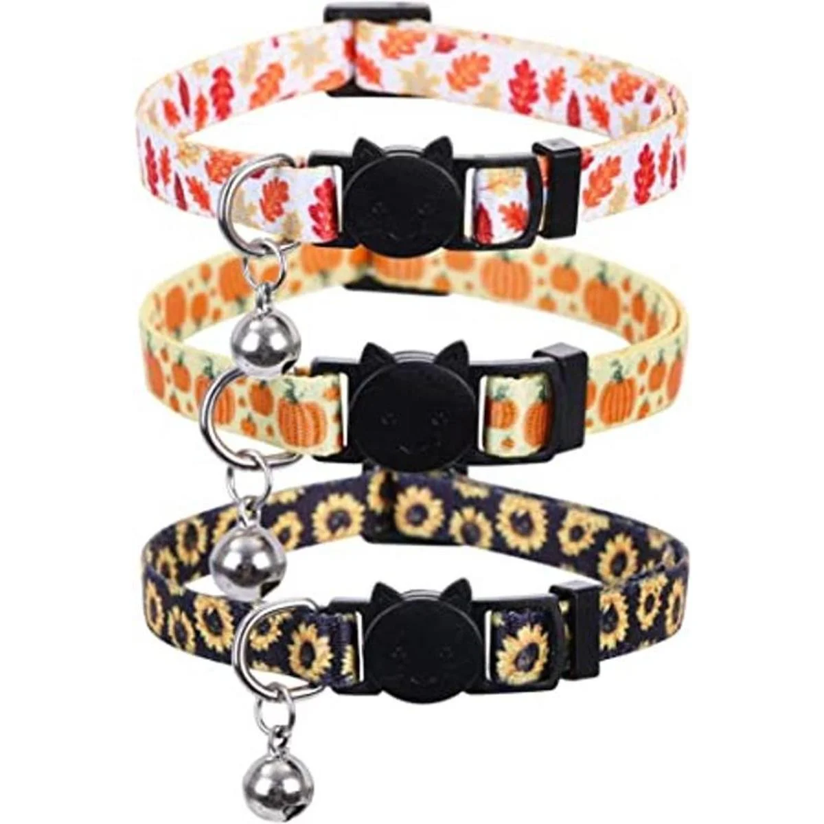 Lamphyface 3 PackSet Día de Acción de Gracias Collar de Gato Breakaway Campana Otoño para Gatito Ajustable Seguridad