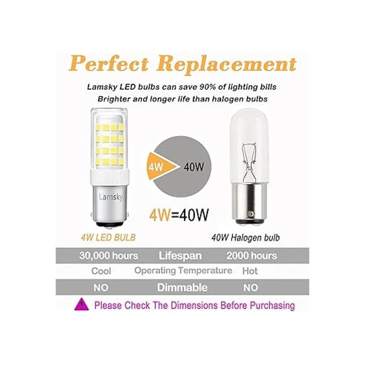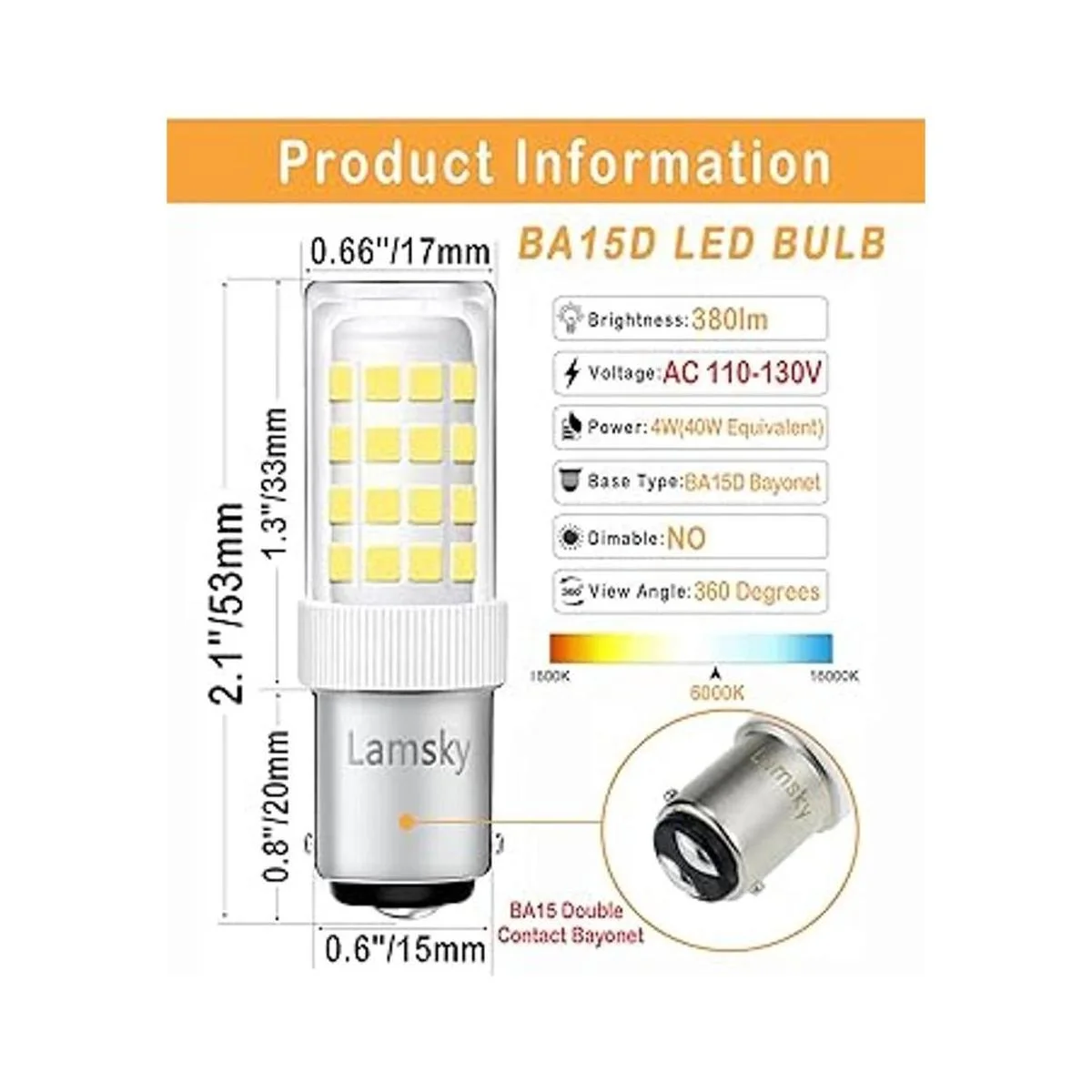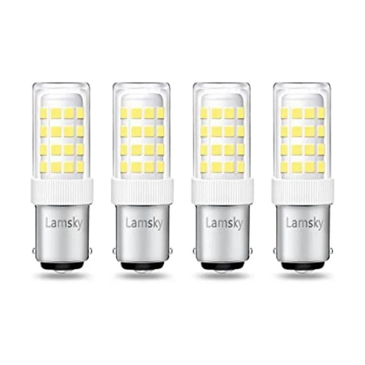 Lamsky BA15D Bombilla LED de doble contacto para máquina de coser, base de bayoneta de 120 voltios, T3T4C7S6, luz diurna de 4 W de 6000 K, bombilla de repuesto halógena LED de 40 W, no regulable paquete de 4