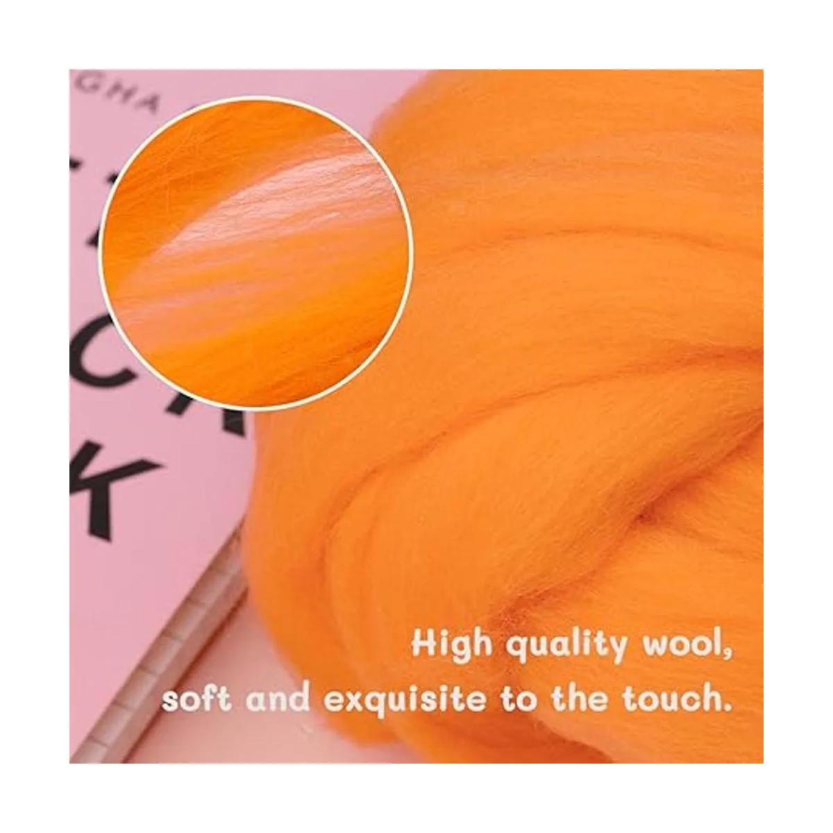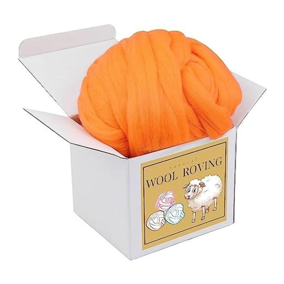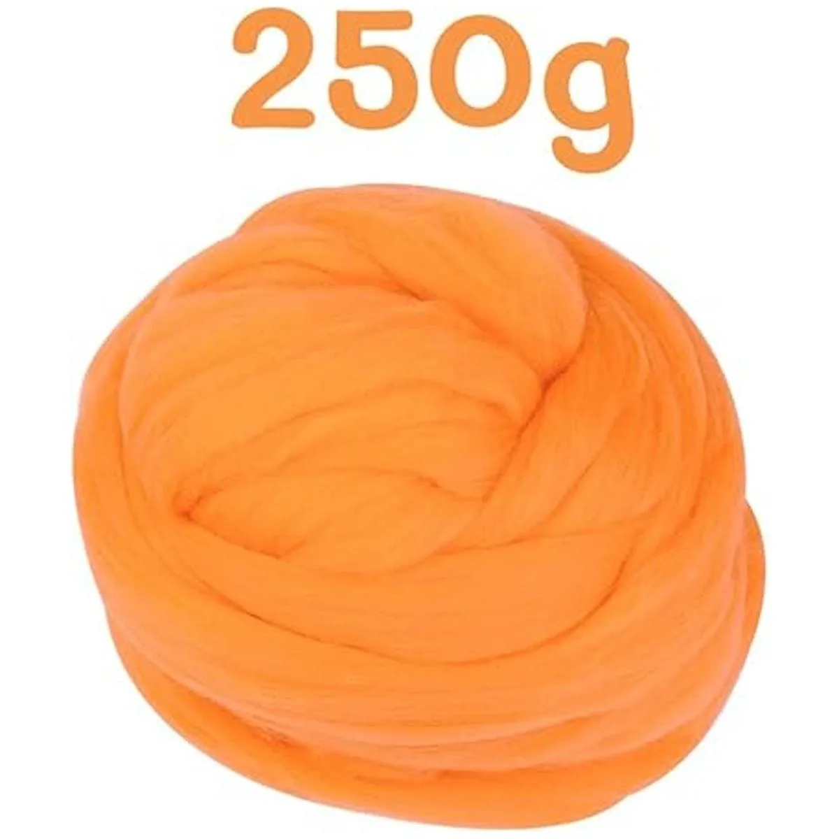 Lana Roving Bulk Hilo grueso de lana de 8.82 onzas, parte superior de lana para fieltro de aguja, suministros de lana de fieltro suave para hilar a mano, fieltro, mezclar, tejer y manualidades naranja oscuro