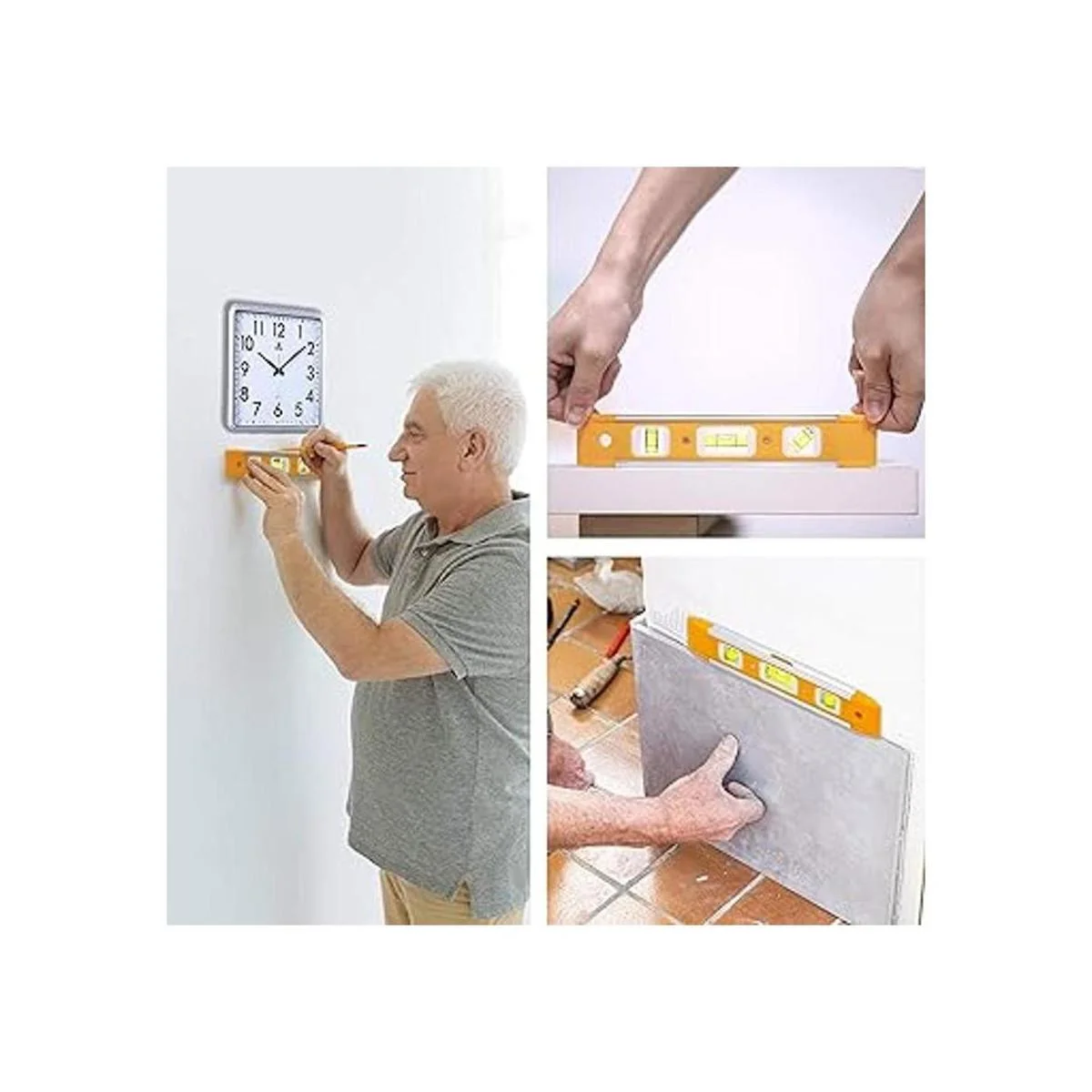 3 formas de medición: tres viales indicadores de burbujas de alta definición para nivelar, cada nivel proporciona 45, 90, 180 para medir horizontal, vertical y plano de 45 grados.