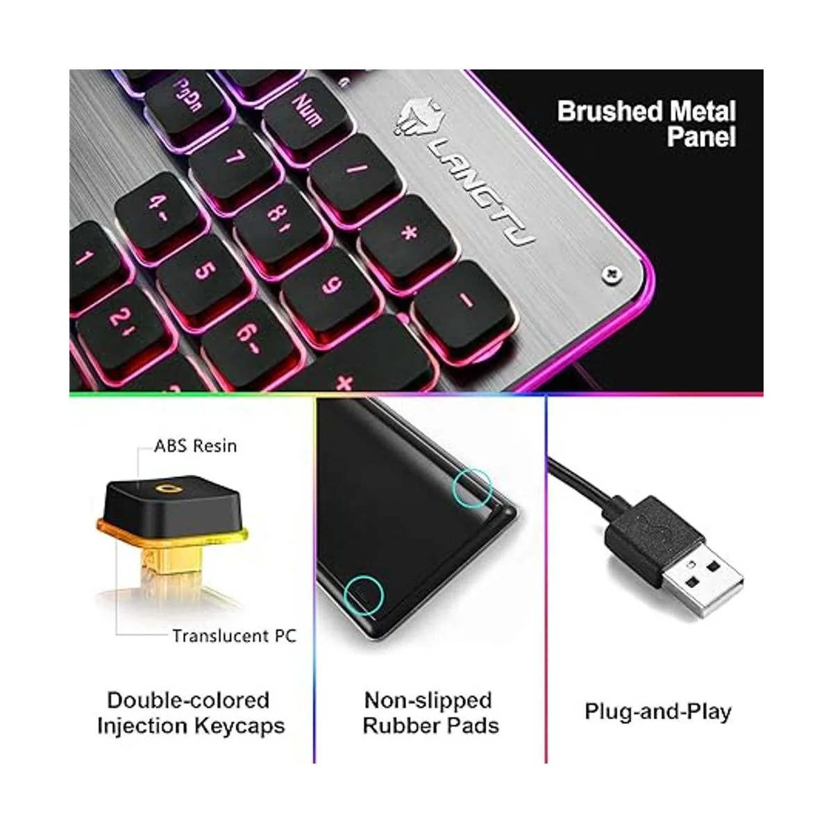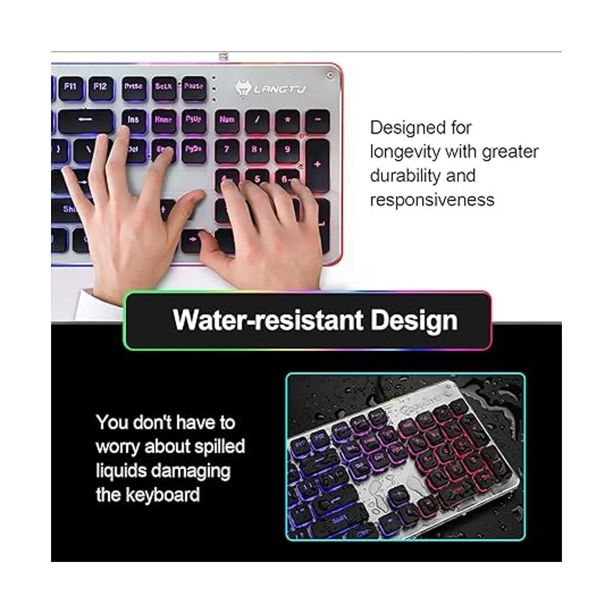 LANGTU L1 Teclado para juegos Rainbow LED Retroiluminado USB PC y portátil Gamers Windows 104 Teclas AntiGhosting 24 Teclas