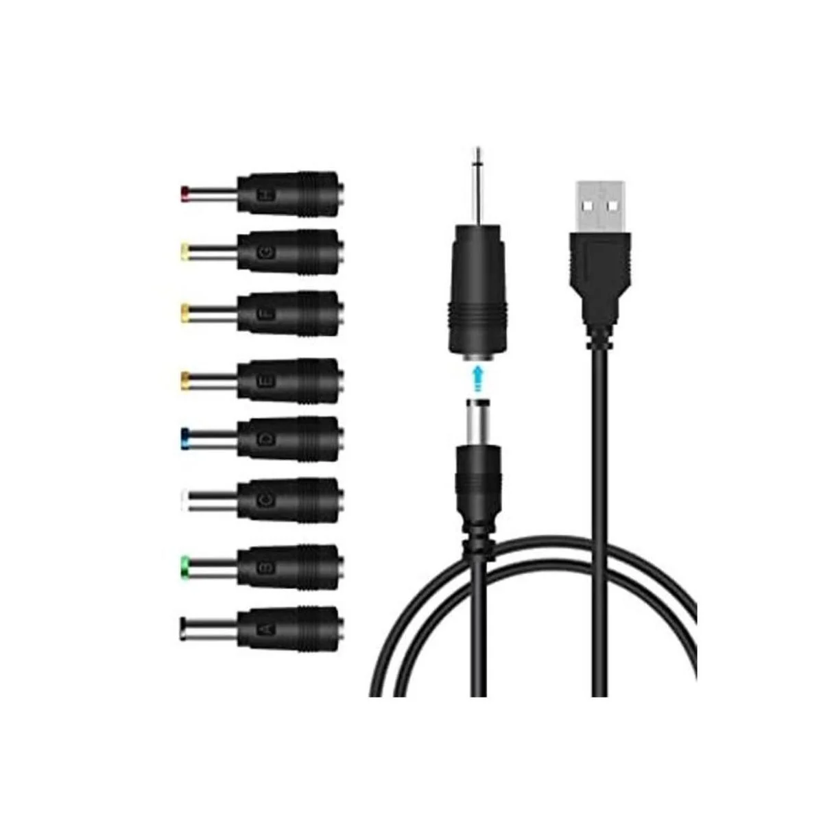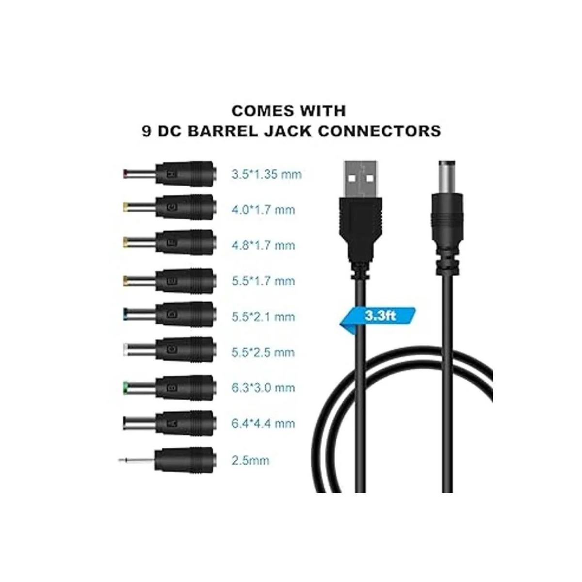 LANMU Cable de alimentación CC de 5 V, cable de alimentación universal USB a CC con 9 conectores adaptadores para varita de masaje, enrutador, lámpara de luna, luz LED, altavoz y más