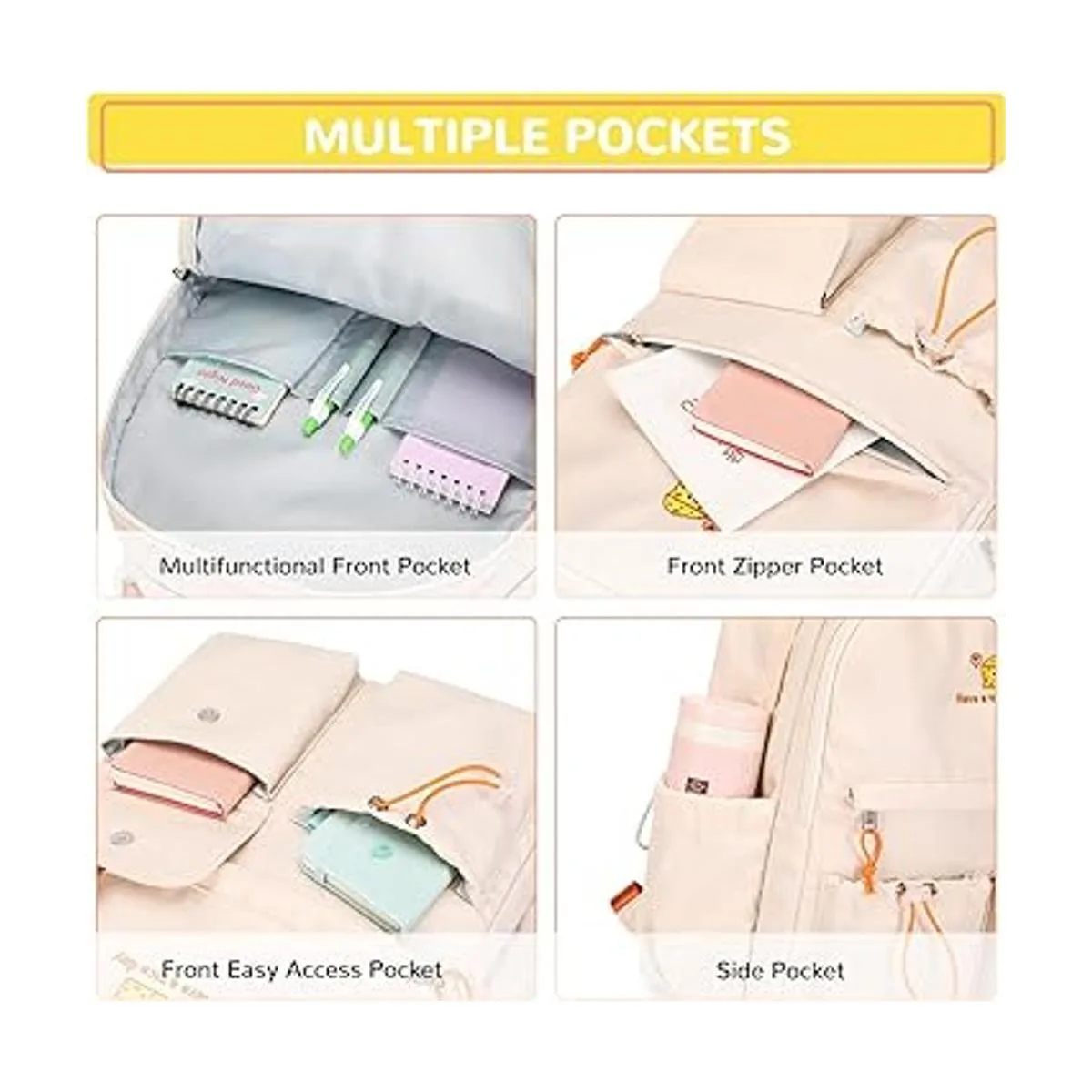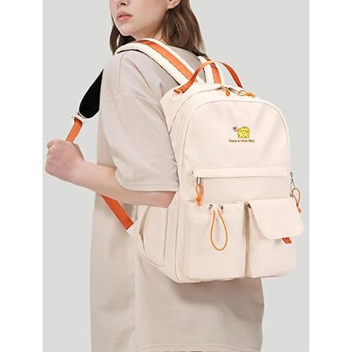Lanola Backpacks for Girls kids Fashion Laptop Backpacks Middle School bags Women Casual Daypack Beige