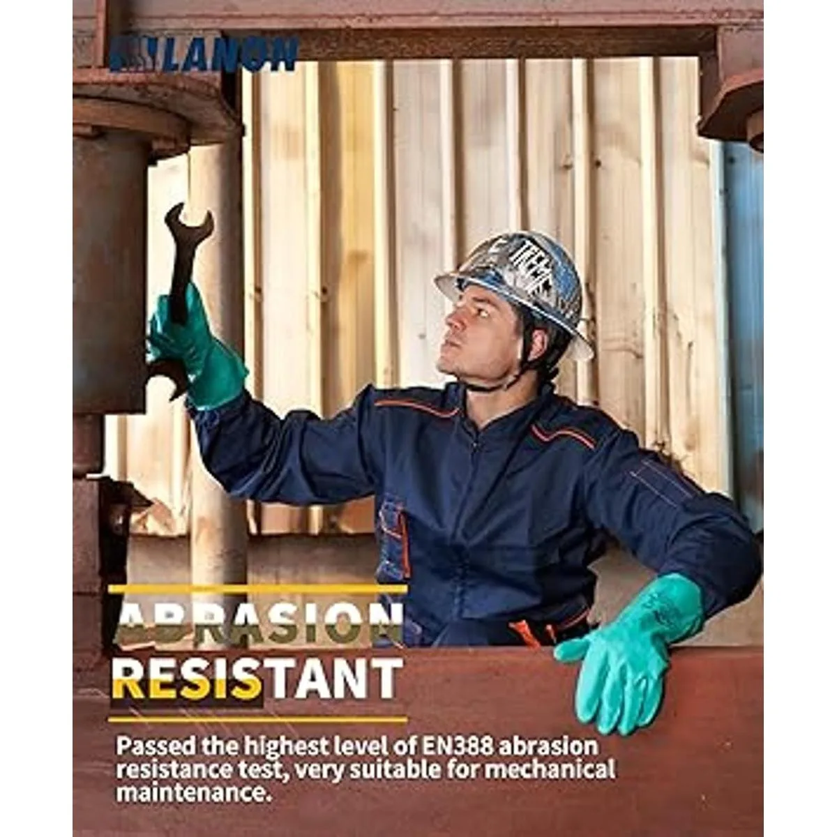 Gran agarre: los guantes antideslizantes con textura de partículas resistentes a los químicos ofrecen un buen agarre para agarrar las partes húmedas y grasosas. Pasaron el nivel más alto 4 al menos 8000 ciclos de prueba de resistencia a la abrasión, nivel 1 índice 1.2 de prueba de resistencia de la hoja y nivel 1 20 newton de prueba de resistencia a pinchazos.