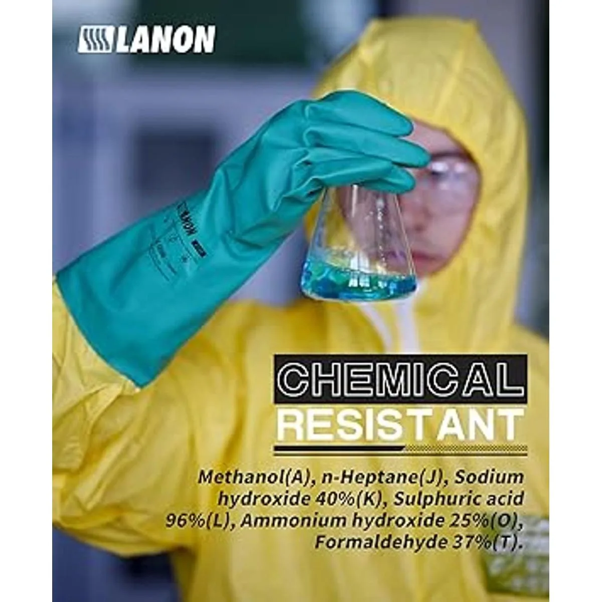 LANON 3 pares de guantes resistentes a los productos químicos, reutilizables y resistentes, protección contra ácidos, álcalis y aceite, antideslizantes, talla X grande
