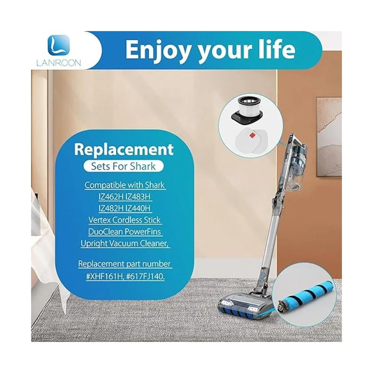 LANROON IZ462H Kit de filtros de cepillo para aspiradora inalámbrica Shark IZ462H IZ483H IZ482H IZ440H IZ441HBRN Vertex, parte XHF161H y 617FJ140, paquete de 2 filtros HEPA, paquete de 4 filtros de espuma y fieltro, 1 rodillo de cepillo principal