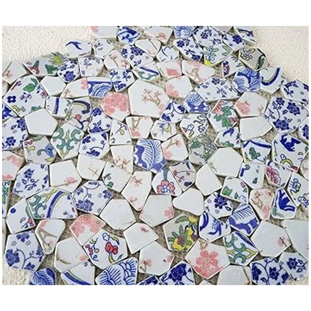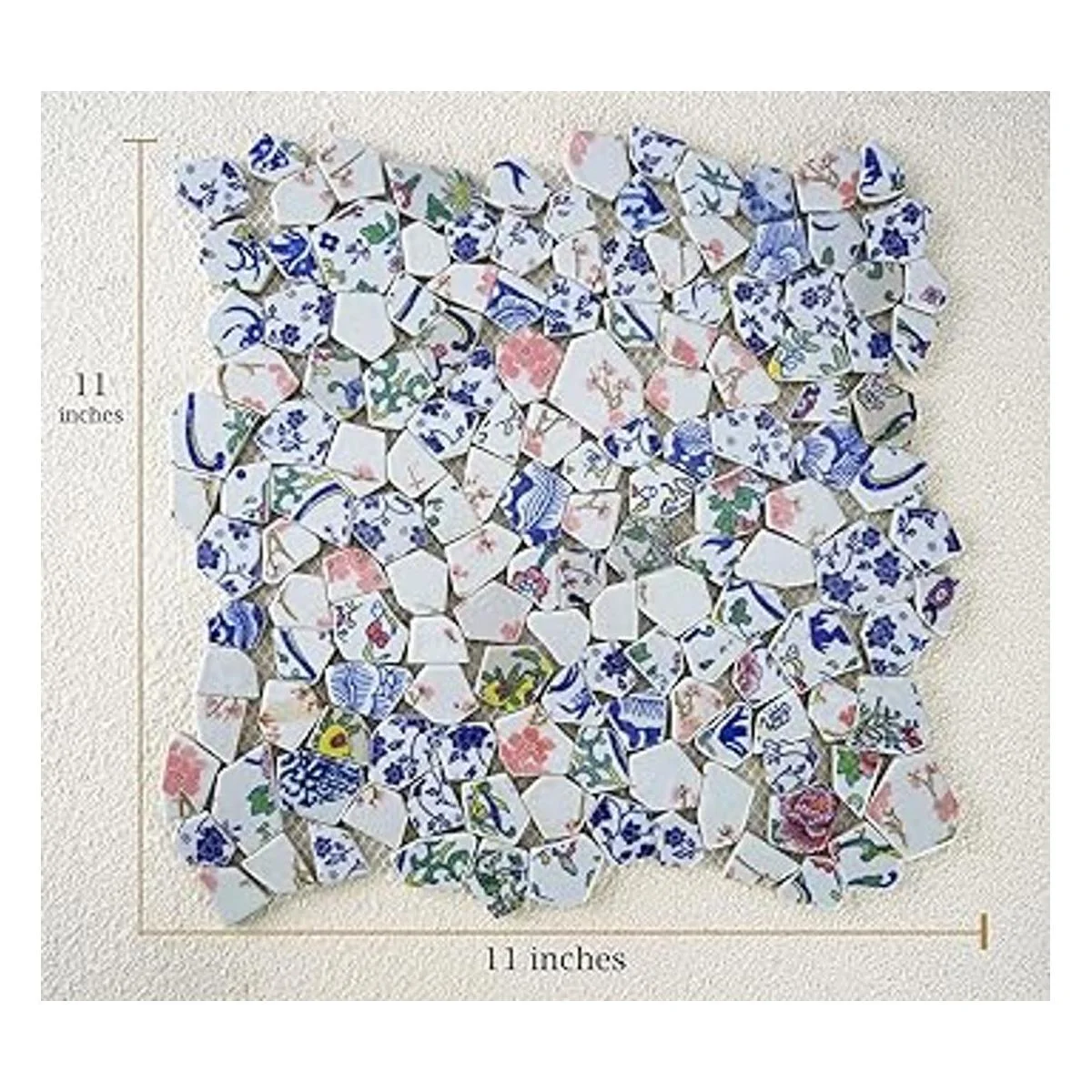 Lanyani Azulejos de porcelana de cerámica rotos para manualidades de mosaico, azulejos de mosaico de placa de porcelana azul y blanco esmaltados, 11 x 11 pulgadas
