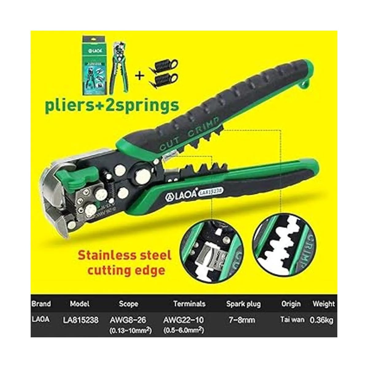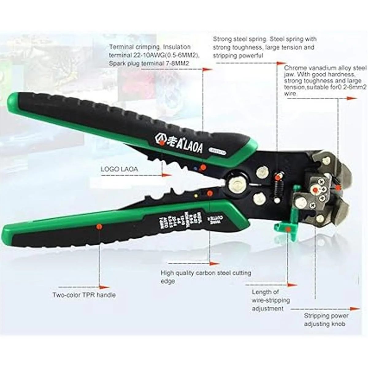 LAOA Pelacables automático con resortes, herramientas profesionales de pelado de cables eléctricos, para prensado de electricistas