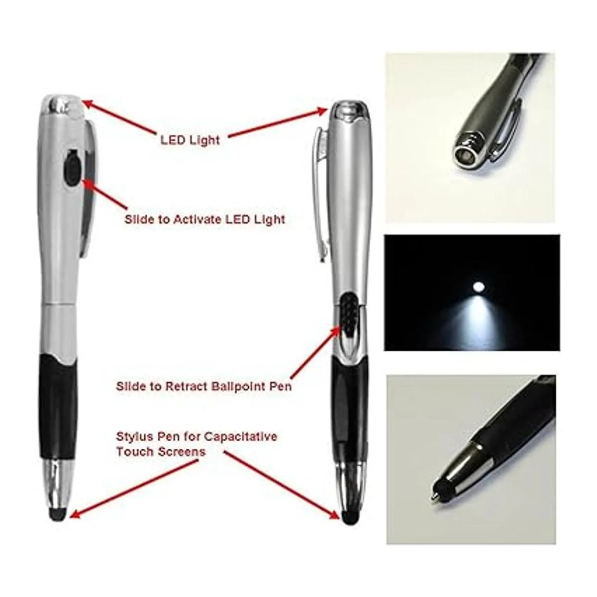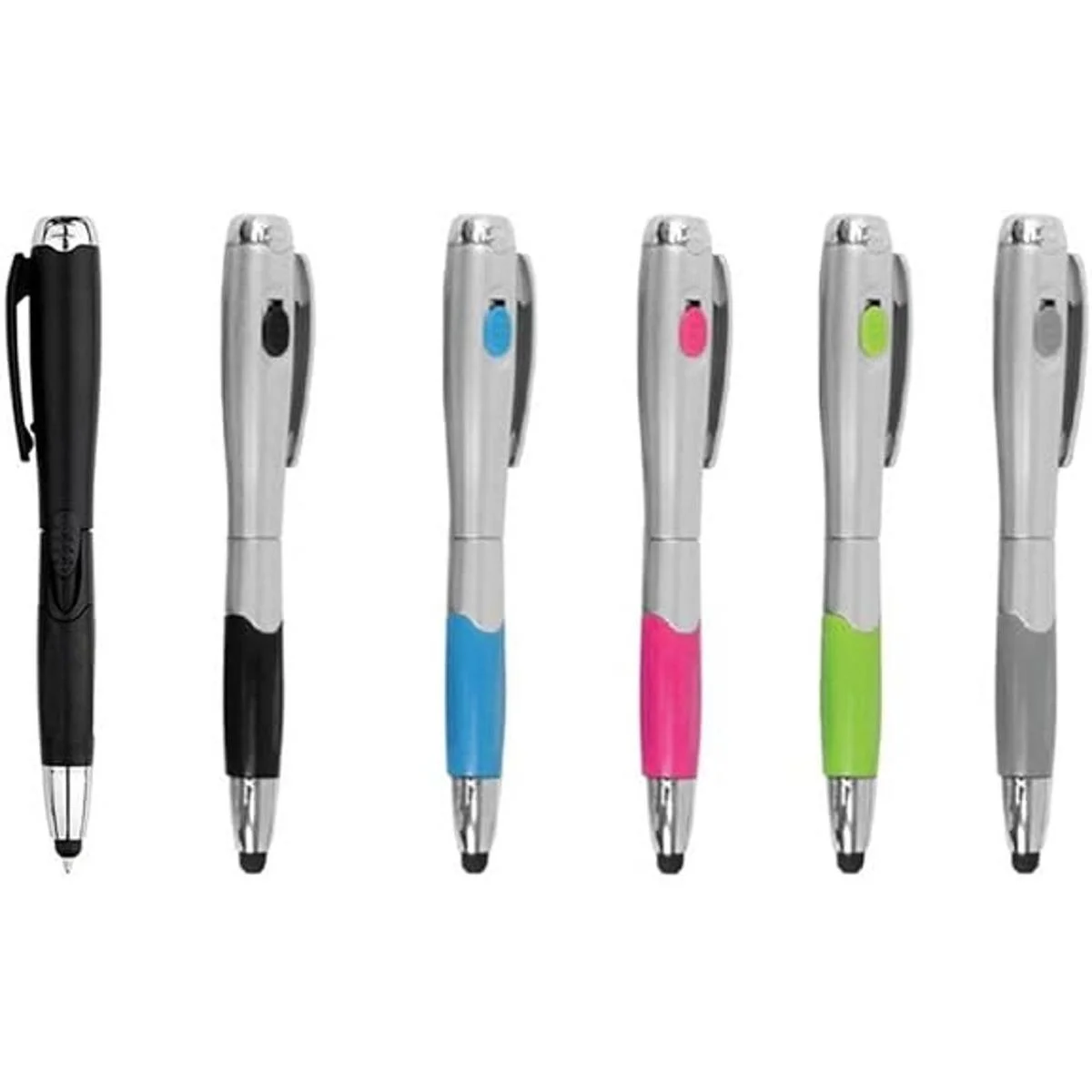Lápiz capacitivo 3 en 1 para pantalla táctil bolígrafo linterna LED.