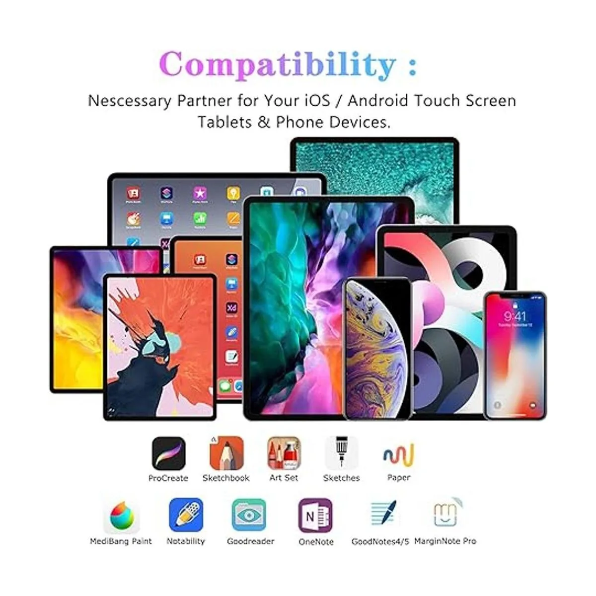 Amplia compatibilidad: diseñado para ser compatible con dispositivos Apple iOS iPad Pro 12.9, iPad Pro 11, iPad Pro 10.5, iPad Pro 9.7, iPad 9/8/7/6/5/4/3/2/1, iPad mini 6/5/4/3/2/1, iPad Air 4/3/2/1, iPhone 13, iPhone 12Pro Max/1. 2Pro/12 mini/12, iPhone 11Pro Max/11Pro/11, iPhoneXSMax/XS/XR/X, iPhoneSE2, iPhone8Plus, iPhone8, iPhone7Plus, iPhone7, iPhoneSE, iPhone 6s/6s Plus iPhone 5/5s/5 SE iPhone 4/4s