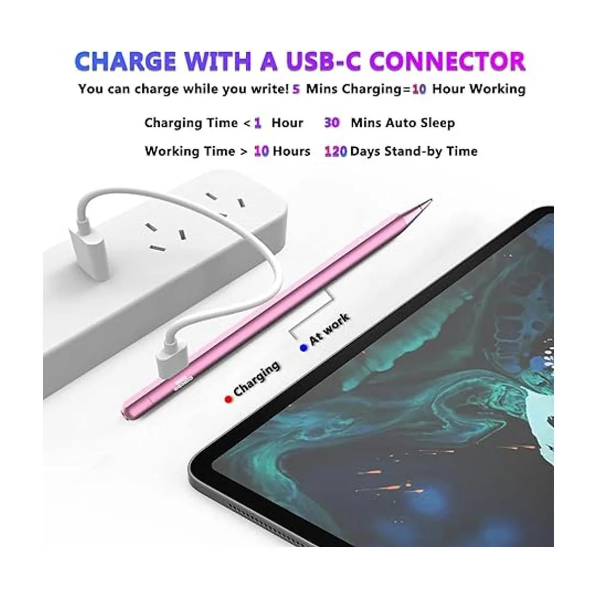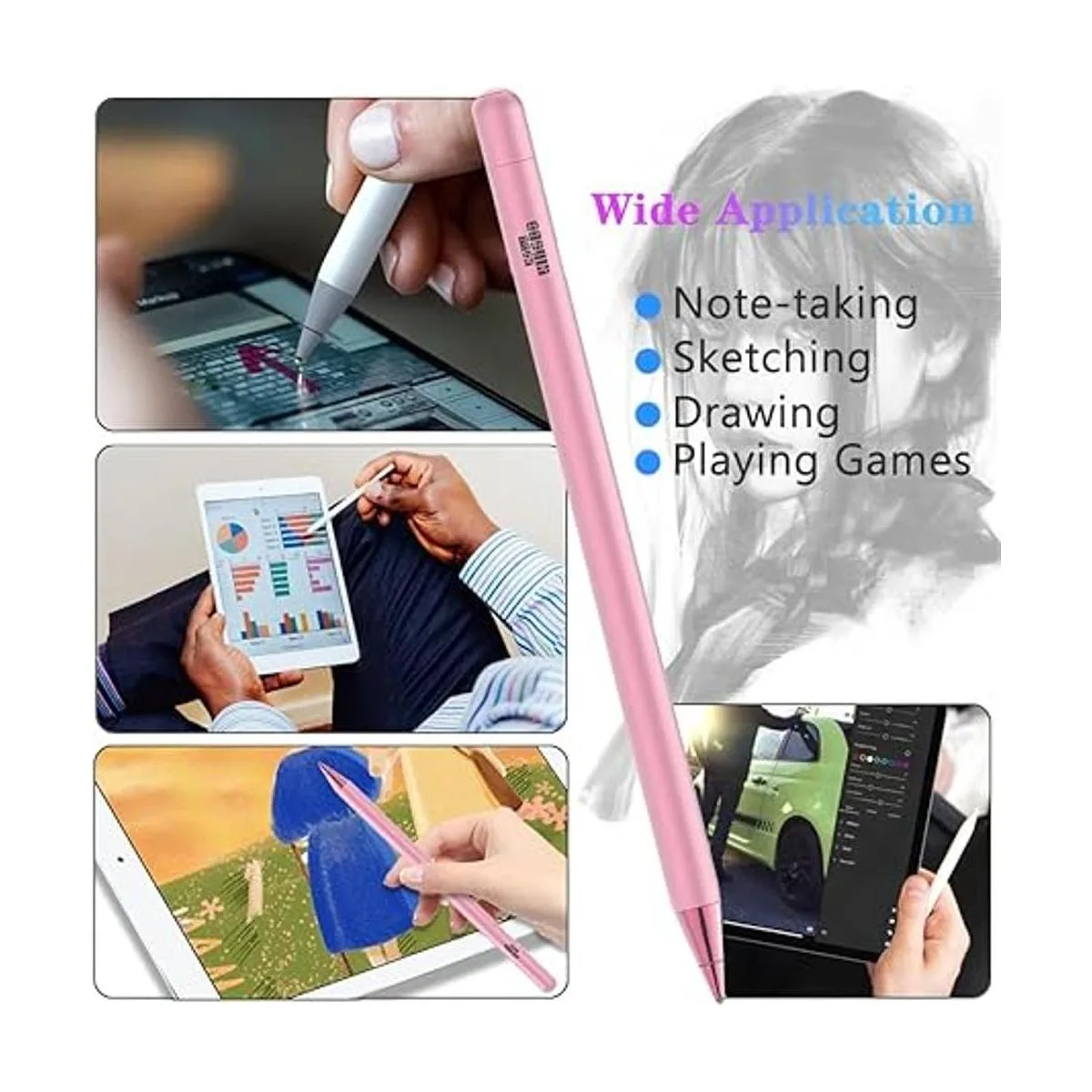Lápiz digital para iPad, lápiz digital para iPhone, lápiz digital recargable, punta fina de 0.055 in para dibujar y escribir, compatible con iPad ProiPhone y iPadiPad MiniiPad Air rosa