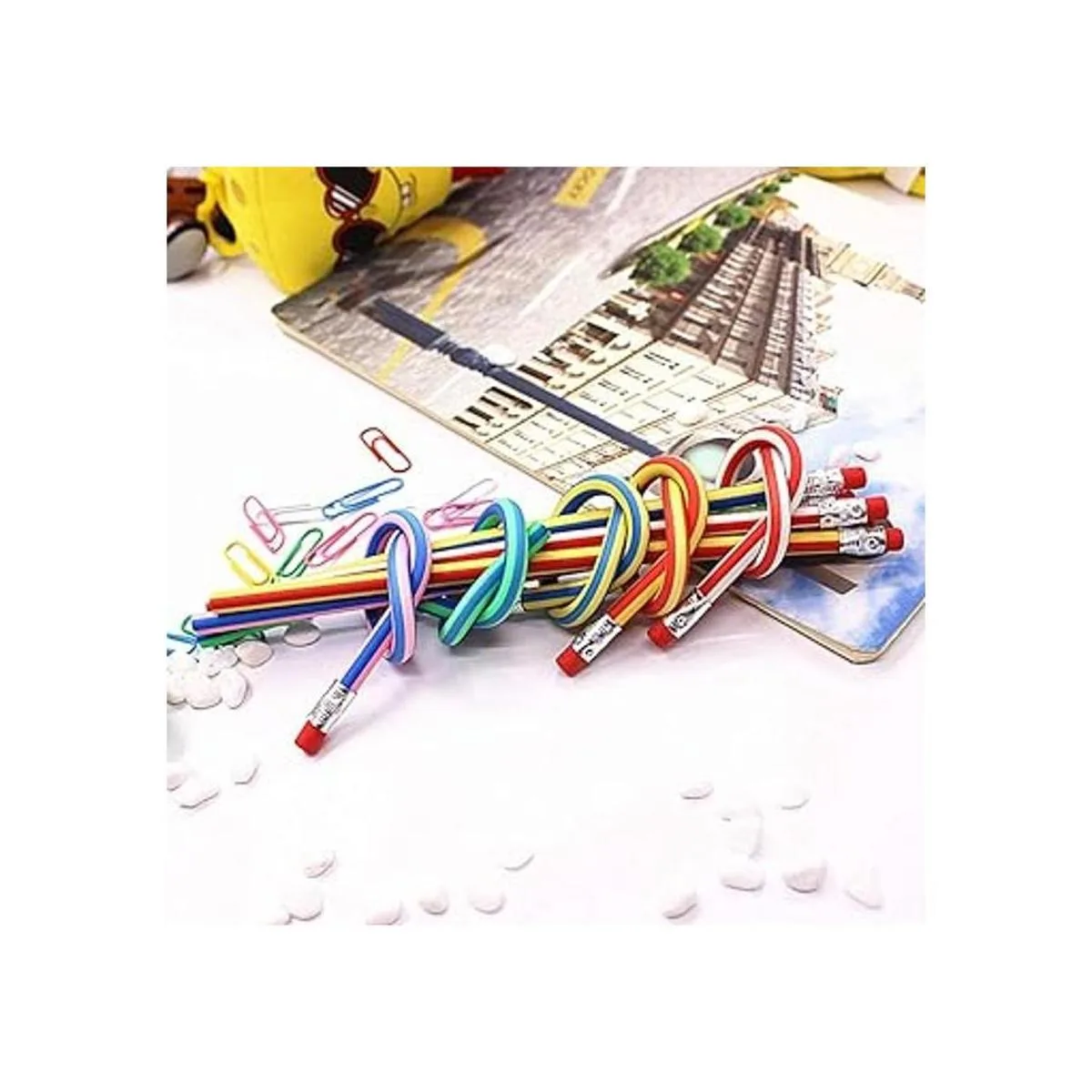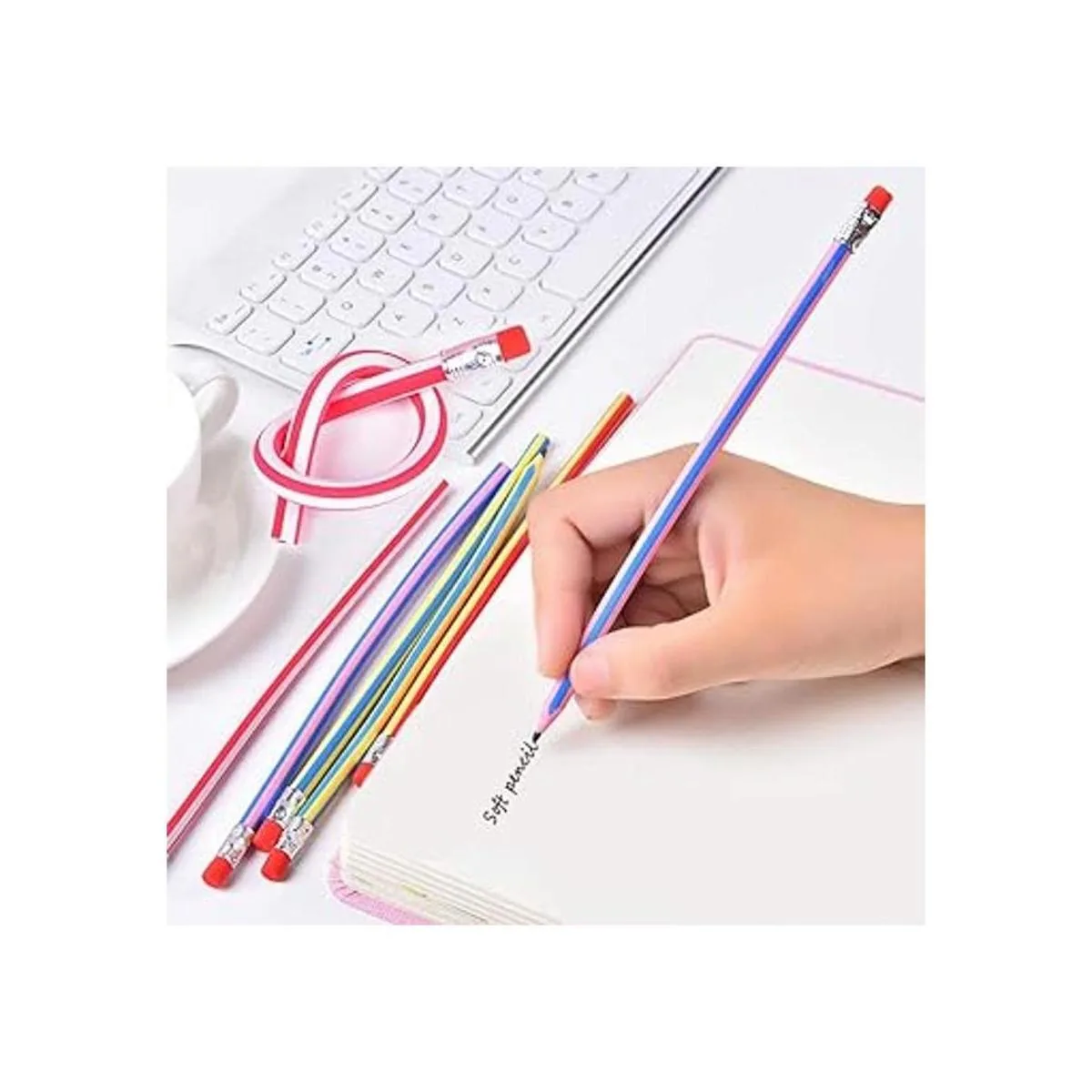 Materiales: todos estos coloridos lápices flexibles están hechos de goma no tóxica, por lo que son extremadamente suaves con tacto cómodo. Los lápices suaves están estampados con rayas y diseñados con un borrador en un extremo, regalo de escritura perfecto para los niños.