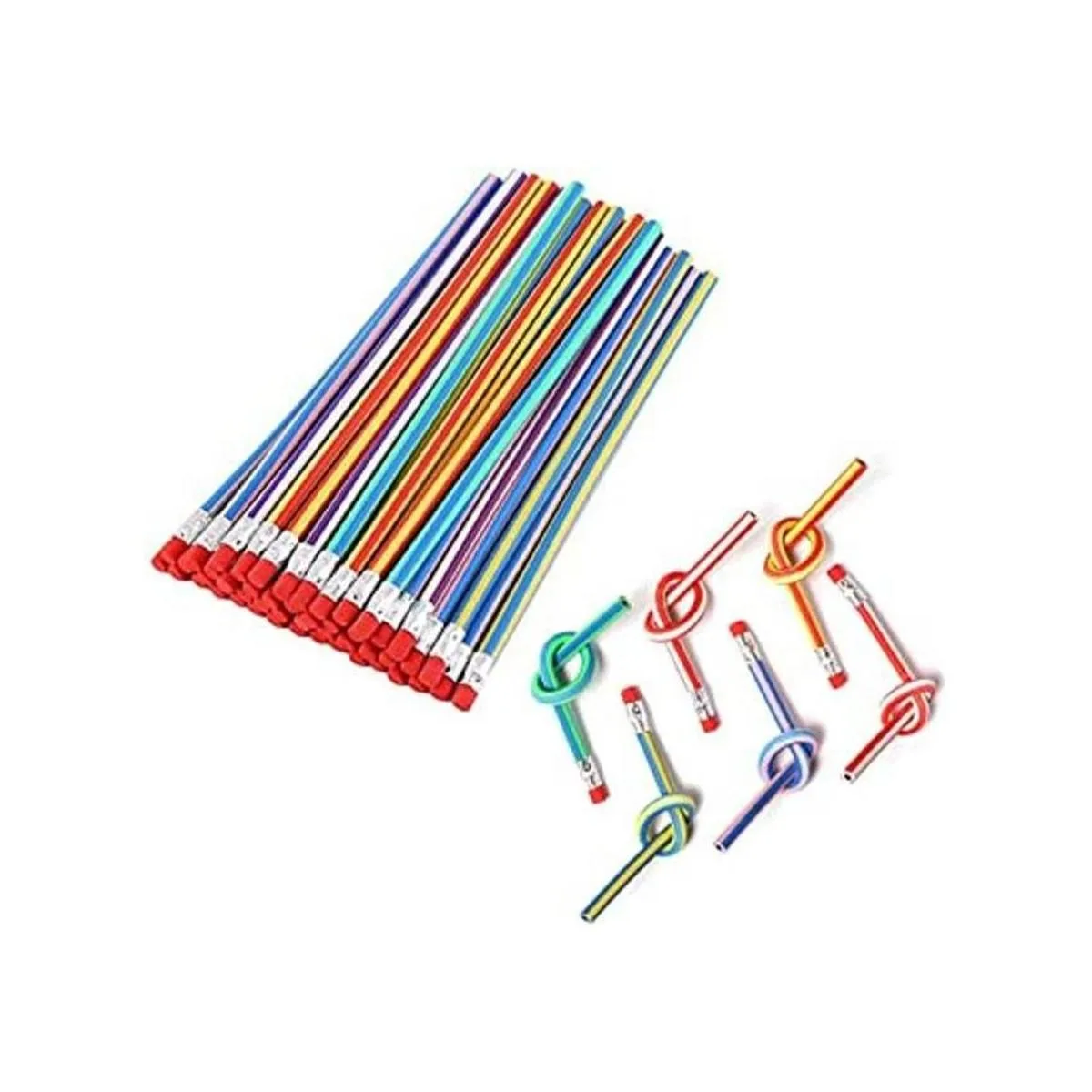 Lápiz flexible flexible, 35 unidades, lápiz suave y flexible, lápices suaves de rayas coloridas, con borrador, como regalo para estudiantes o niños