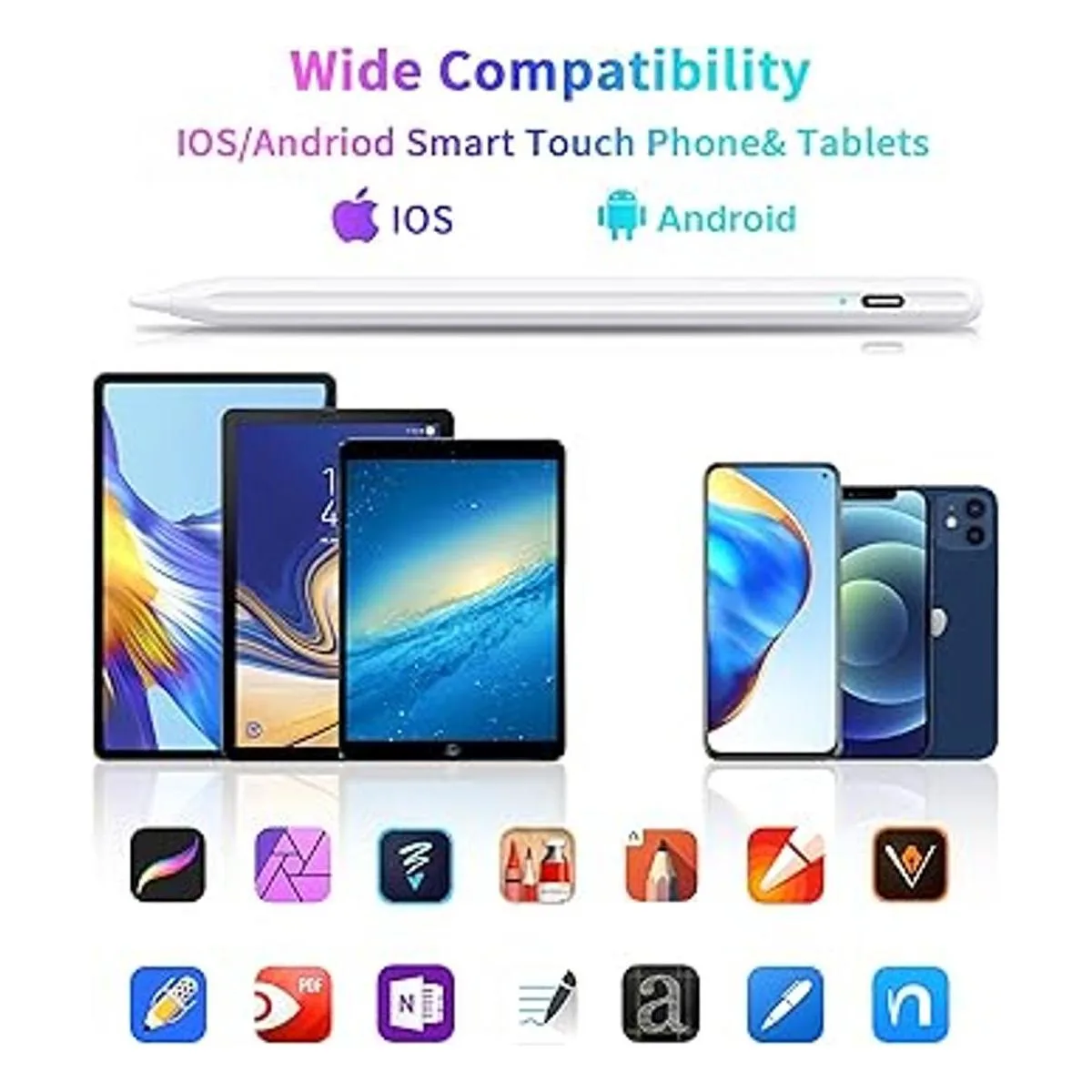 Lápiz óptico, lápiz óptico activo compatible con pantallas táctiles iOS y Android, lápiz óptico recargable con doble pantalla táctil, lápiz óptico para AppleAndroidSamsung Tablet, 6.5 in, blanco