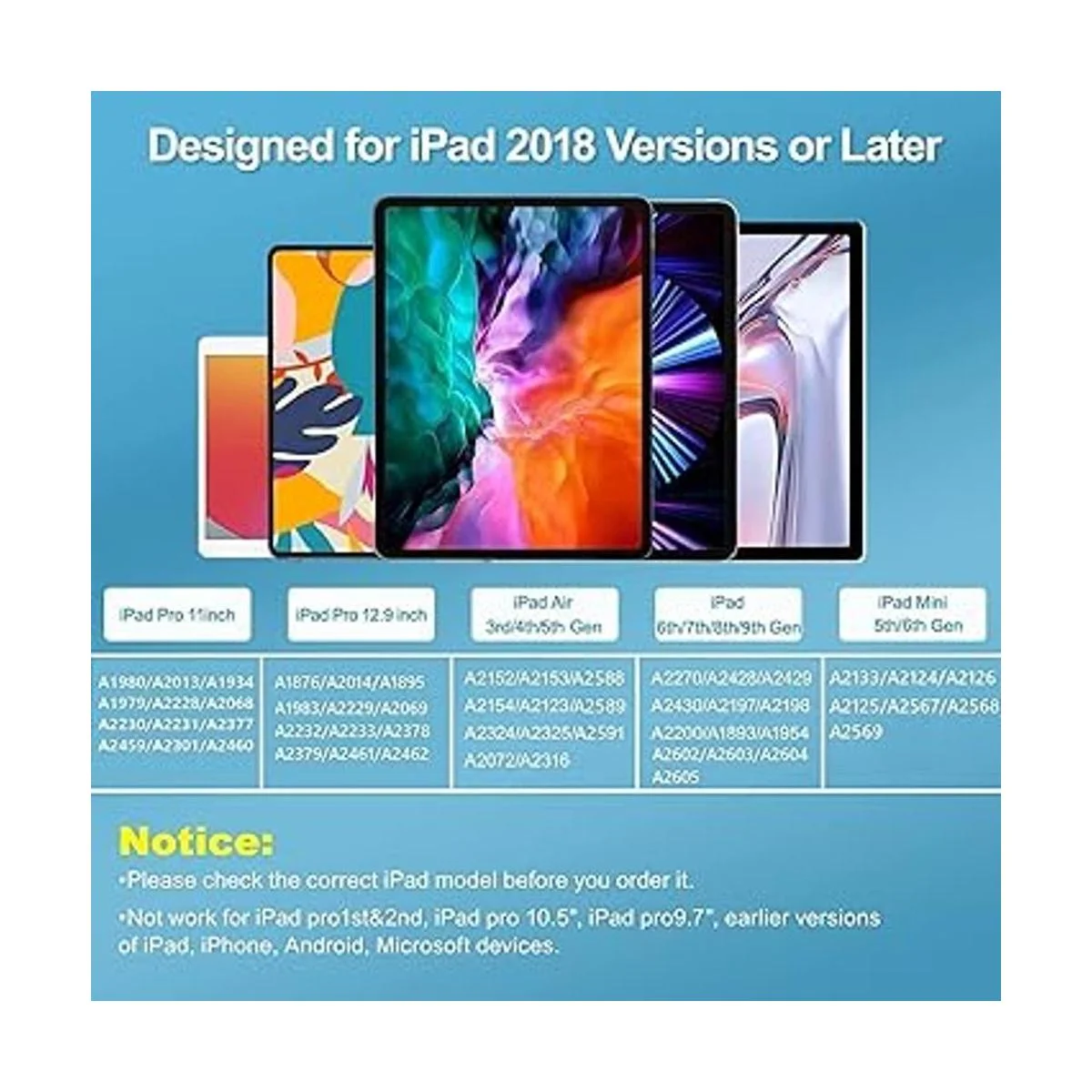 Solo para iPad y iPad Pro2018 o versiones posteriores: lápiz capacitivo activo compatible con iPad y iPad Pro 2018 o posterior: iPad 6/7/8/9 generación/iPad Pro 11/12.9 pulgadas/iPad Mini 5/6 generación/iPad Air 3 generación. Nota: Solo funciona para el modelo anterior, comprueba el correcto antes de realizar el pedido.