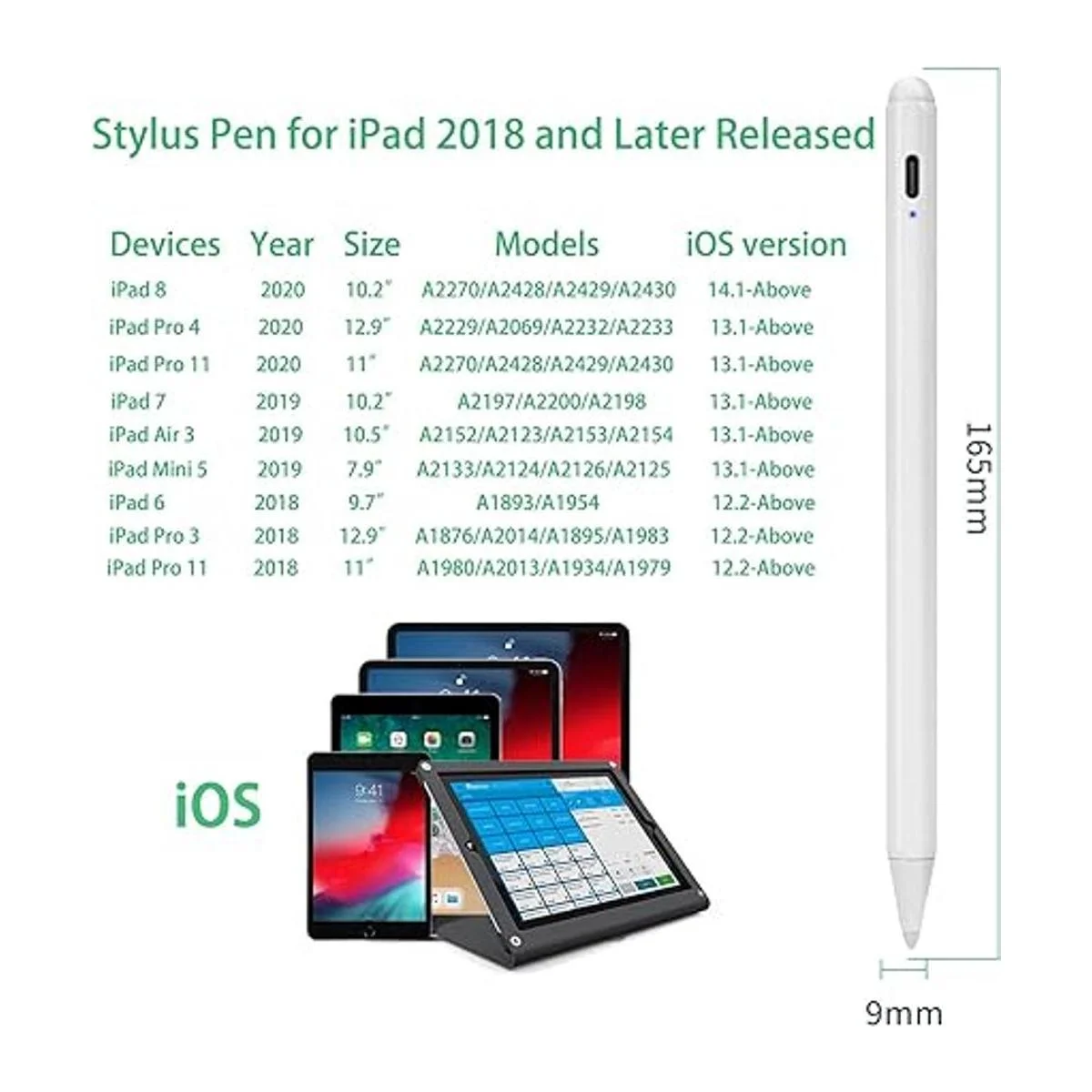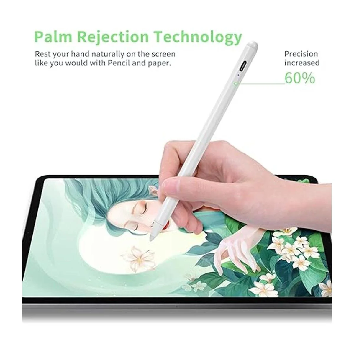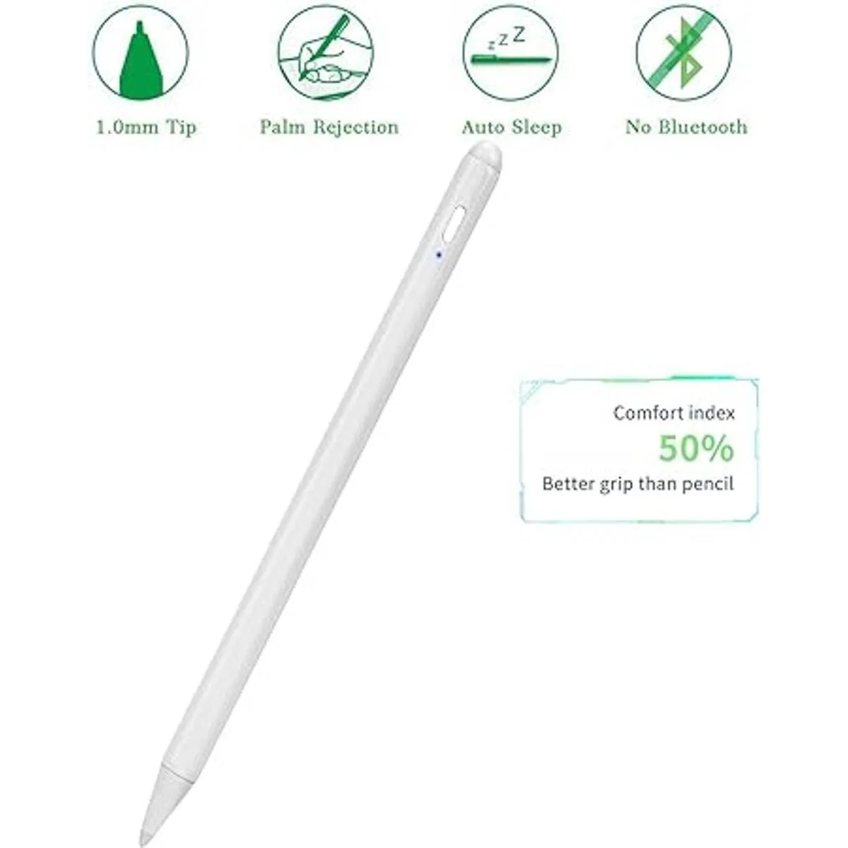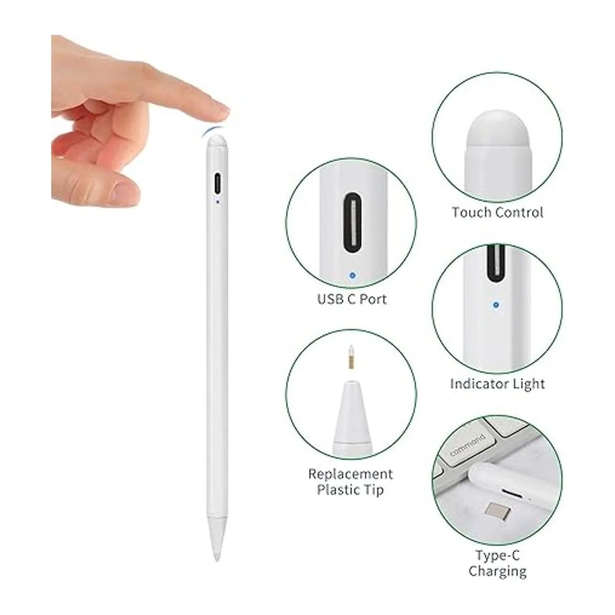 Lápiz óptico para iPad de 98 generación de 10.2 pulgadas con rechazo de palma, carga tipo C de 0.059 in, punta POM, bolígrafo de escritura de dibujo activo compatible con Apple Pencil para iPad Stylus Pen de 10.2 pulgadas, 98, blanco