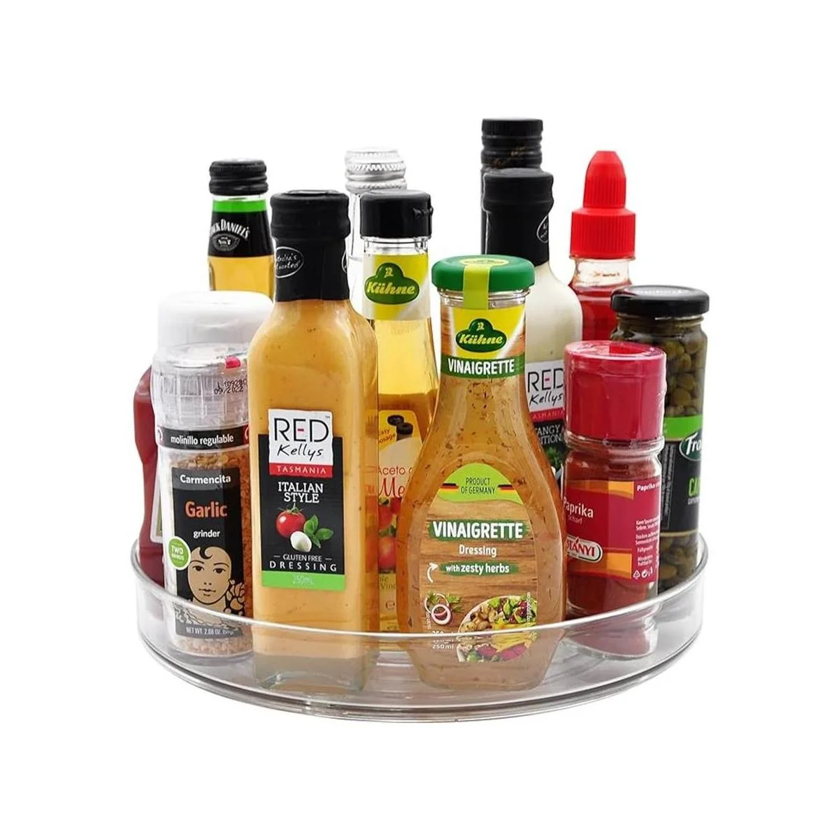 EASY REACH: The 360 rotating lazy susan organizer tray makes items easy to reach, even when stored on upper shelves or deep cabinets.it eliminated the clutter and problem of never really being able to see whats in there, makes organizing items so easy cus theyre clear so you can see everything Perfect for spices in the pantry, jars in the refrigerator, vitamins in medicine cabinet , shampoos in a cabinet.