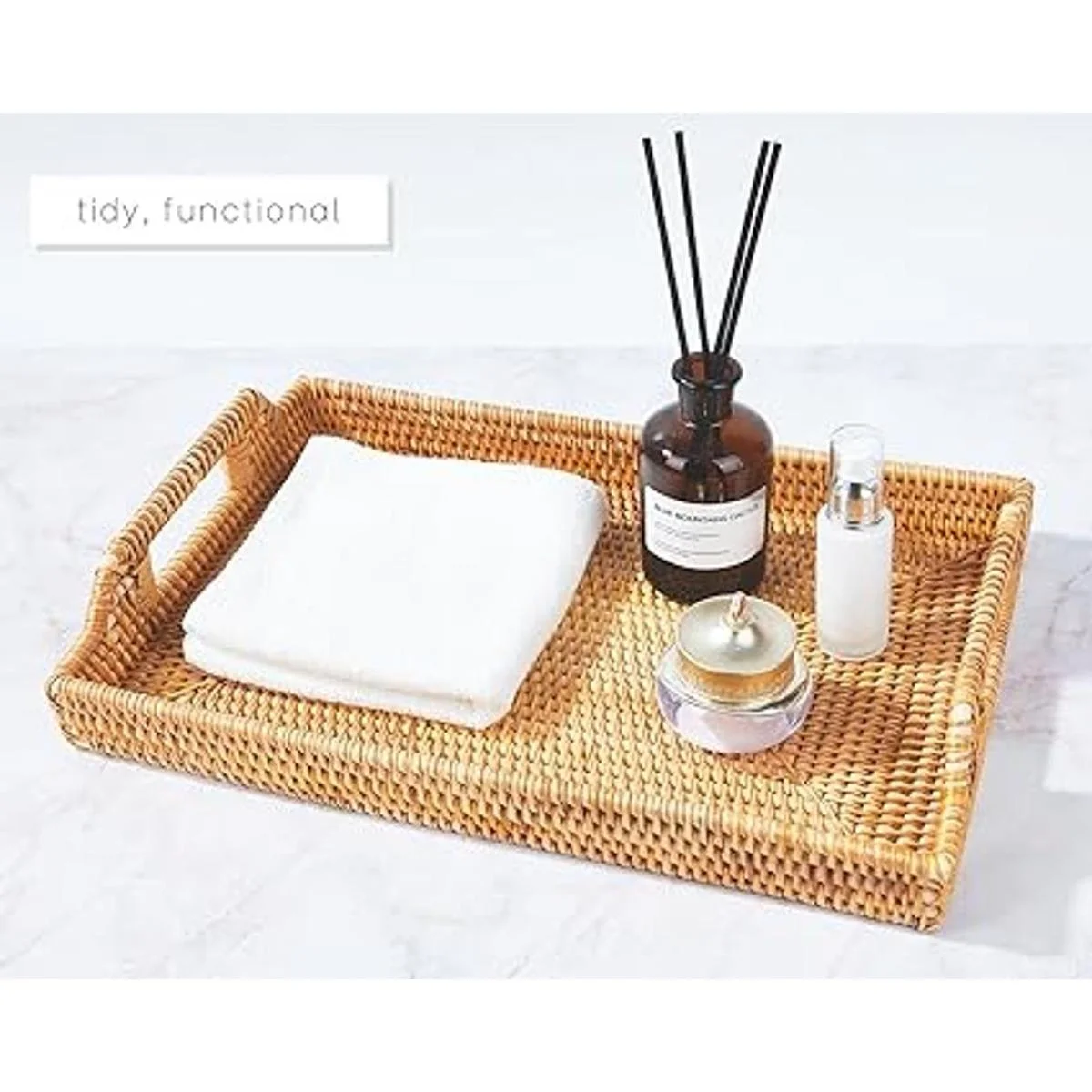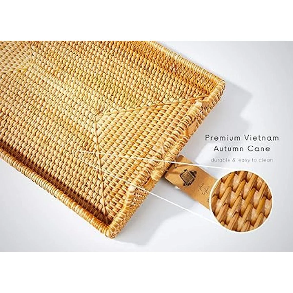 , unlike others which are easily warped or wobbled, our vanity tray is well packaged and made of premium ecofriendly Vietnam autumn cane, meticulously woven by experienced local craftsman makes it sturdy enough to provide durability for multiple purposes while leaving a rustic touch in your rooms