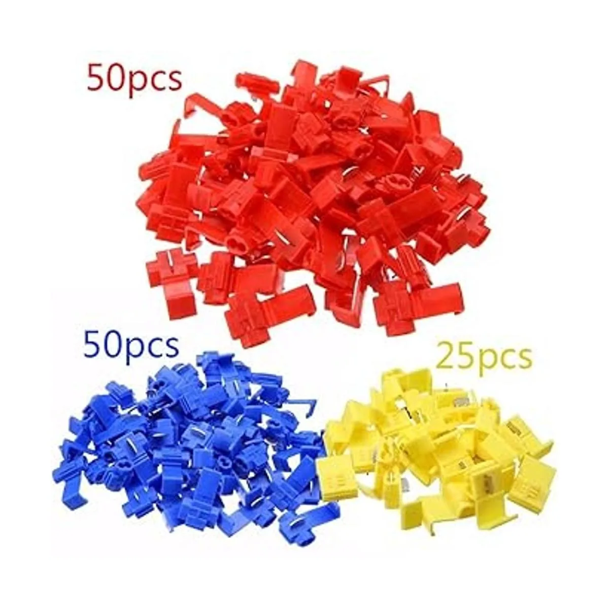 Larlansz 125 conectores de alambre de empalme rápido sin soldadura, 50 unidades de calibre rojo 22 a 18, 50 unidades de calibre azul 16 a 14, 25 unidades de calibre amarillo 12 a 10