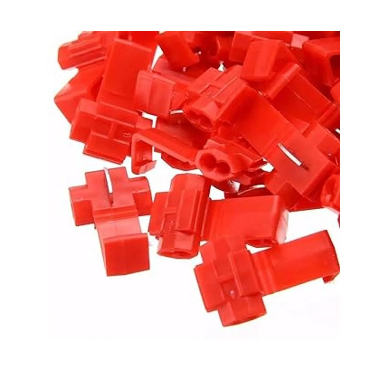 125 empalmadores rápidos para calibres 2218 Ttap hembra rojo 50 piezas; 1614 azul 50 piezas; y calibre 1210 amarillo 25 piezas.