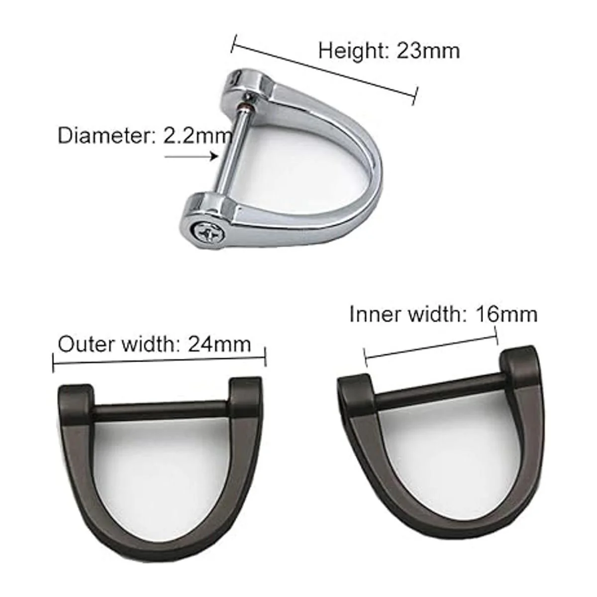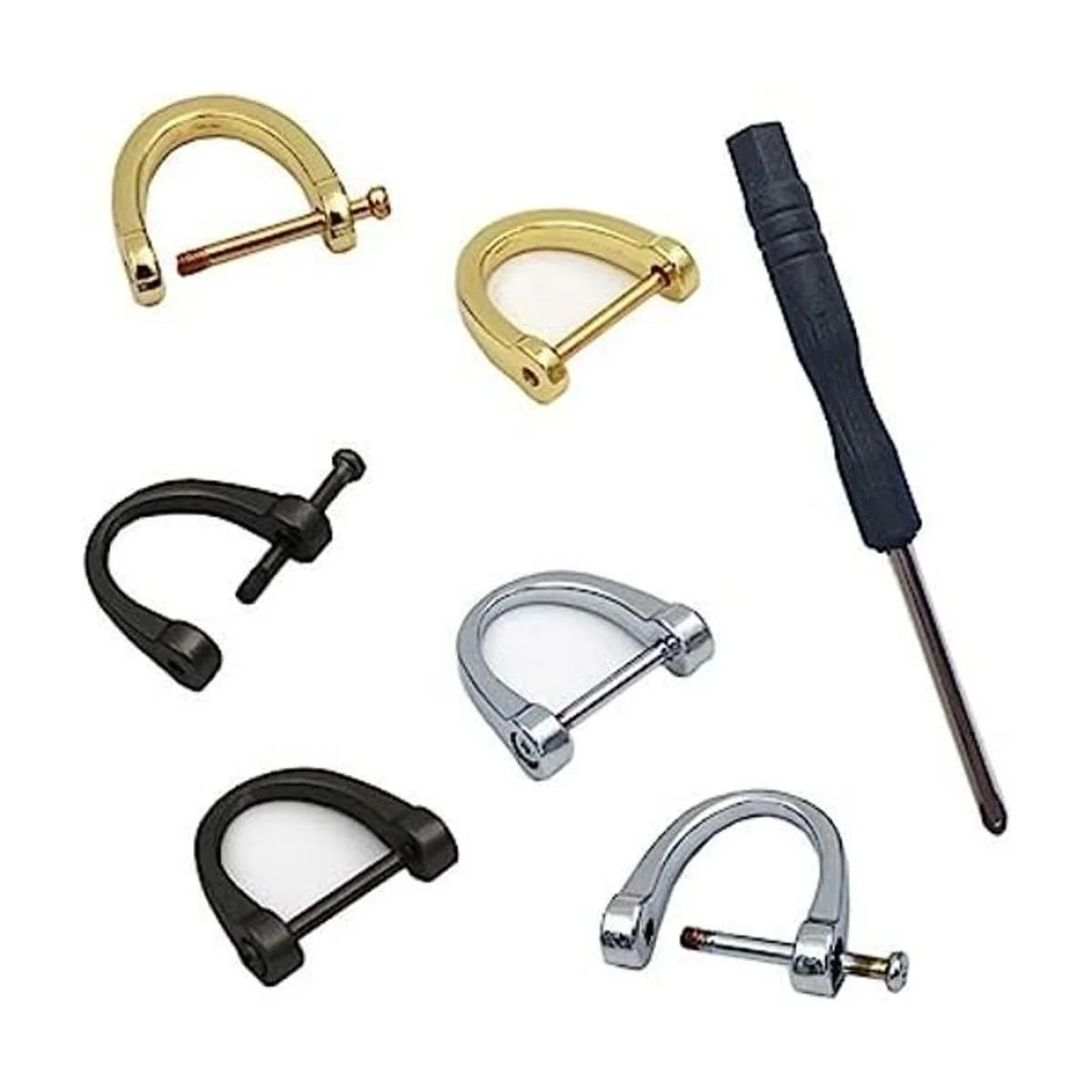 lasenersm 6 anillos en D atornillables, hebilla de herradura, forma de D, anillo en forma de D, aro de metal en forma de D, con un destornillador para bricolaje, repuesto de monedero de cuero, Plata, oro, negro mate