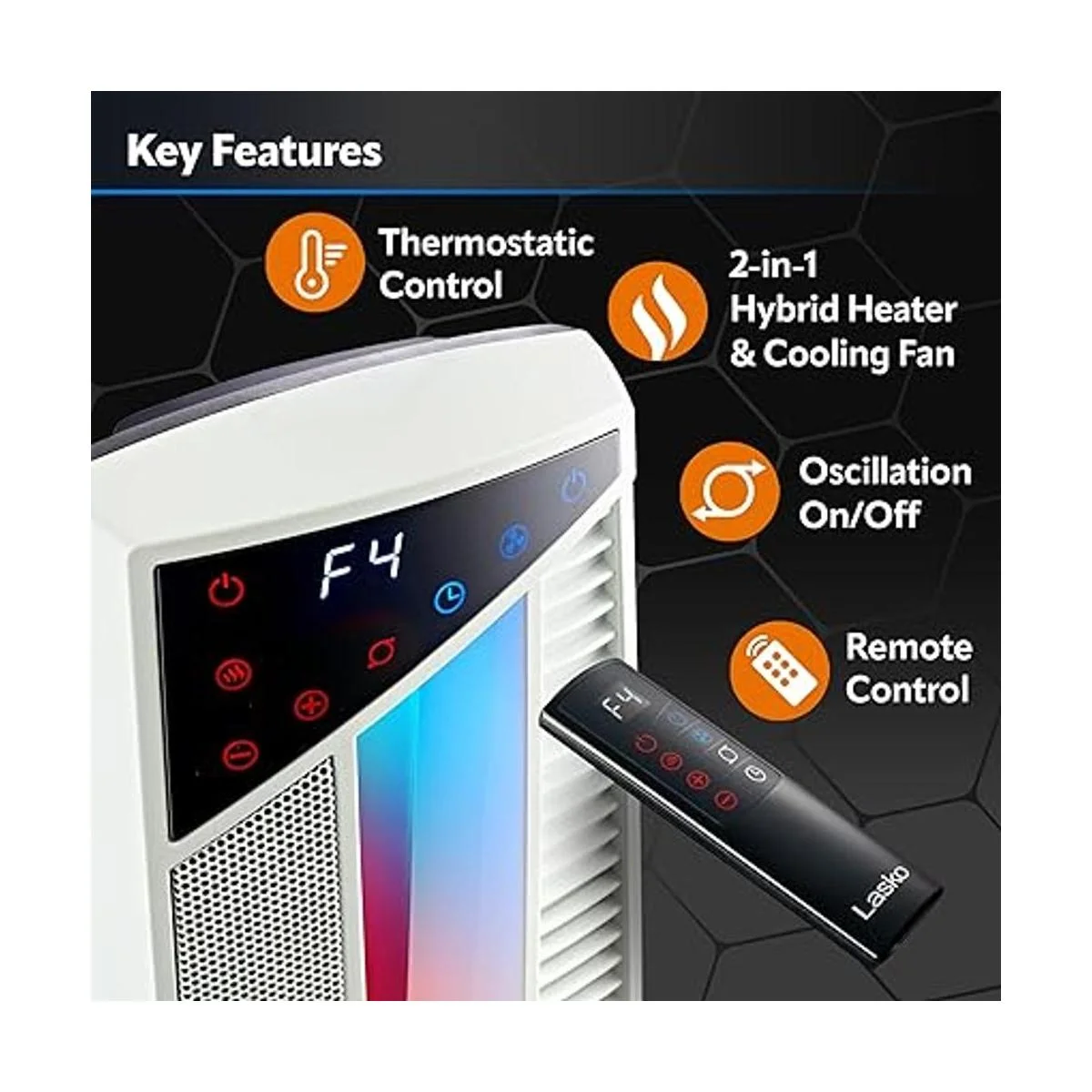 Lasko FHV820 Ventilador híbrido oscilante de alta velocidad para todas las estaciones y calentador de espacio en uno con control remoto, temporizador y termostato para uso doméstico en interiores durante todo el año