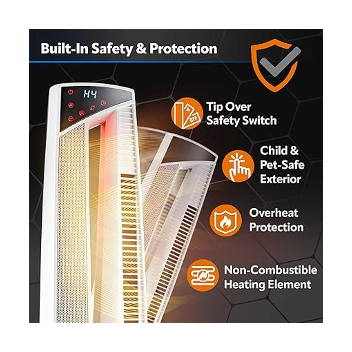 Fácil de usar: el ventilador de alta velocidad y la torre del calentador vienen totalmente montados y listos para usar. Los controles de detección táctil fáciles y la gran pantalla digital hacen que operar la unidad sea muy fácil y el asa de transporte integrada hace que sea fácil mover la torre de una habitación a otra.