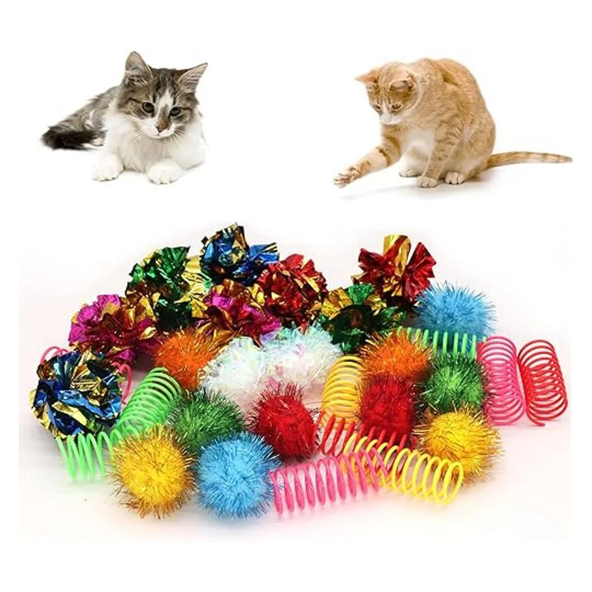 Gran valor: 21 piezas de juguetes para gatos con ratones esponjosos, bolas de colores variados, campanas para gatos, palos para masticar y resortes. Paquete variado de juguetes para todas las necesidades de los gatos.