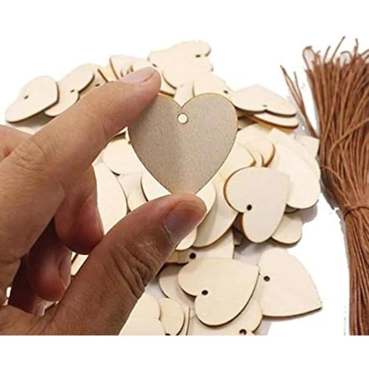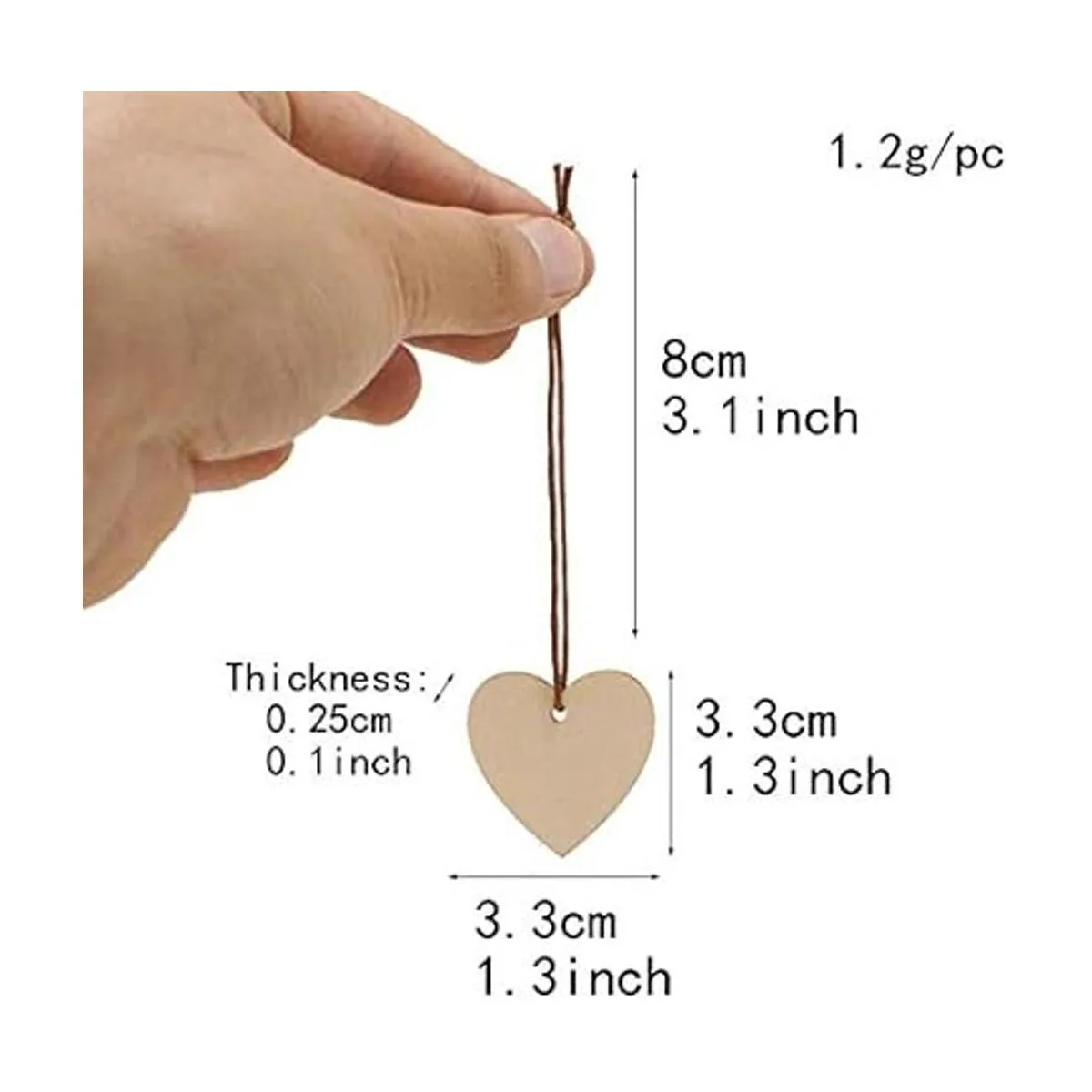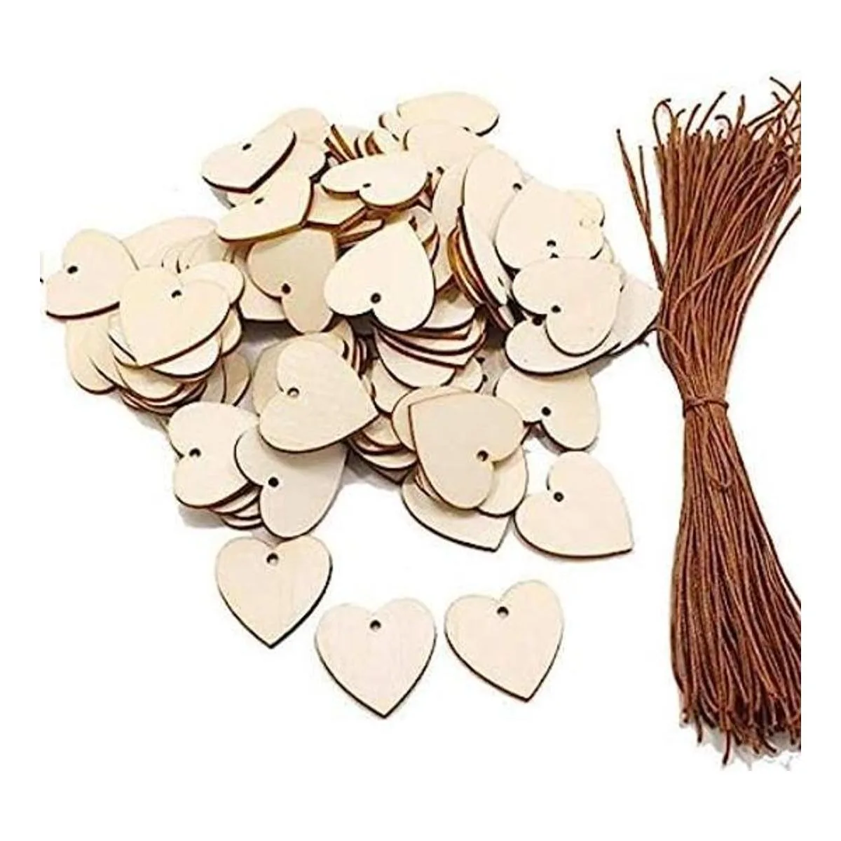Corazones de madera vienen en un total de 100 piezas de corazón de madera con 100 piezas de cordel de 3.1 in que puedes colgar con cordel.