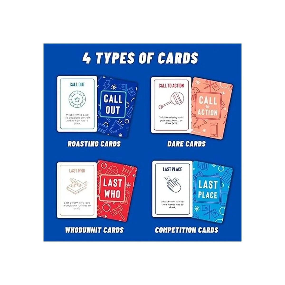Categorías de cartas: El juego de cartas para beber cuenta con cuatro categorías únicas. Logra un giro en el clásico juego de hacer o beber, con desafíos divertidos, los más probables que, e incluso quién lo hizo. Suficiente variedad para jugar toda la noche y nunca aburrirse.
