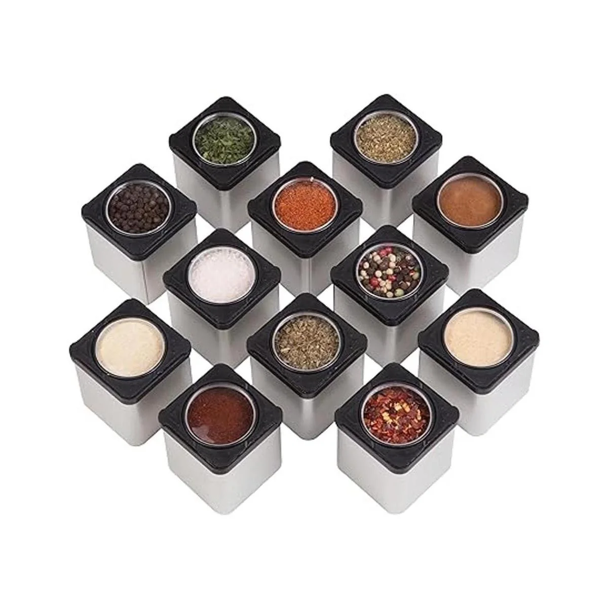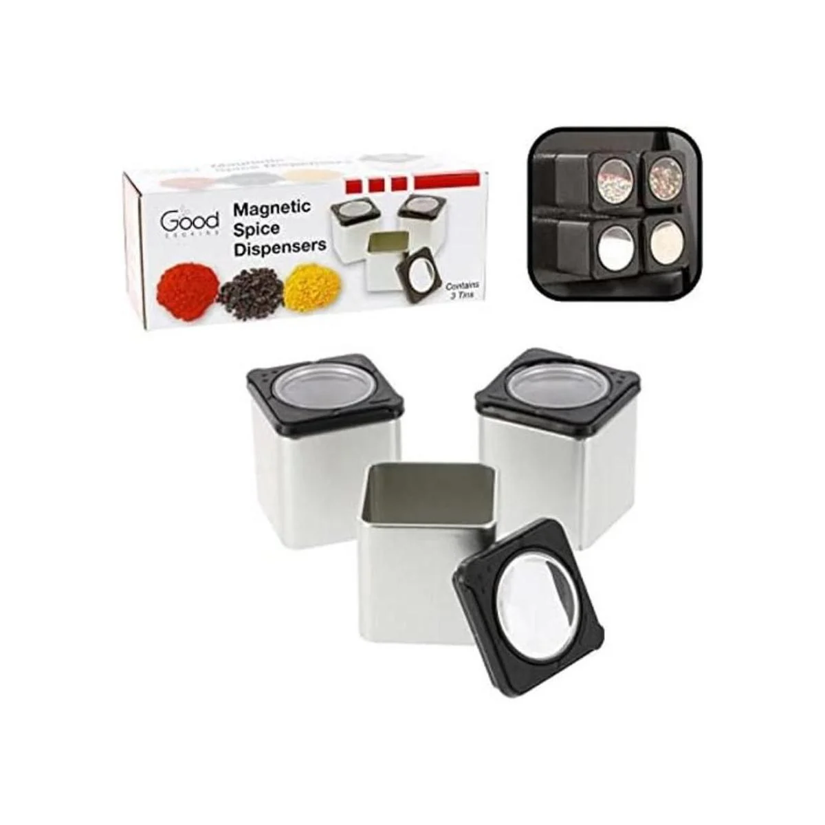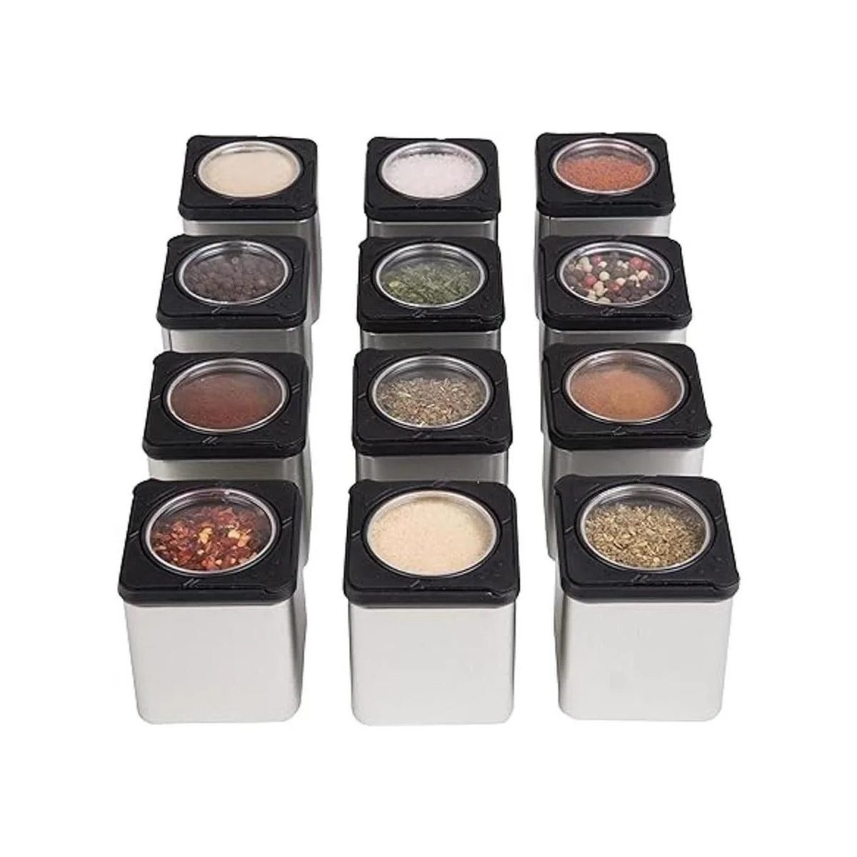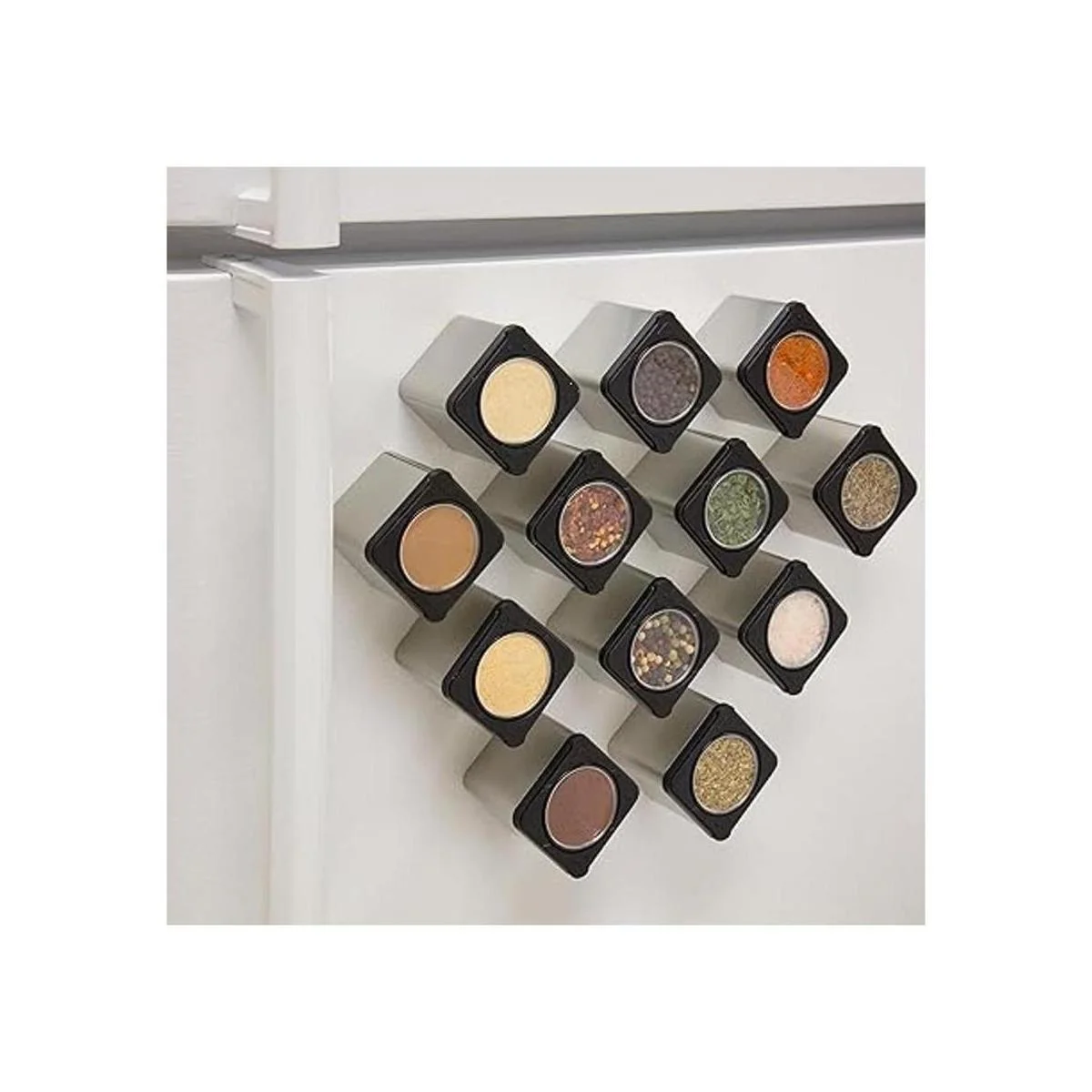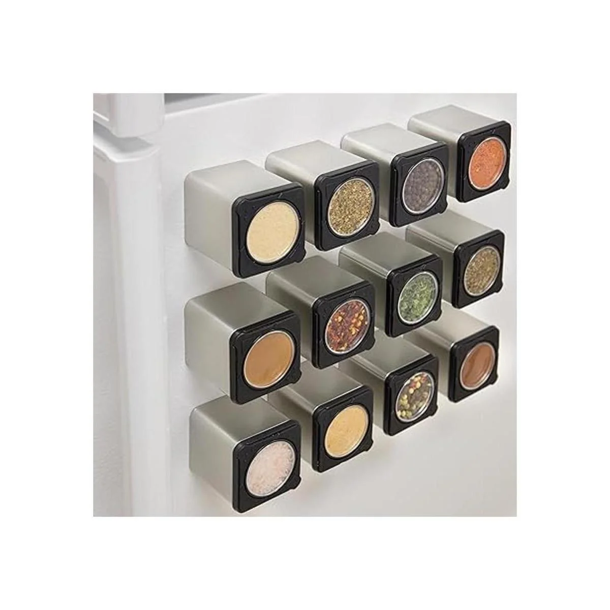 Latas magnéticas de especias los recipientes para agitar o verter se adhieren a la mayoría de las puertas de los frigoríficos., Negro