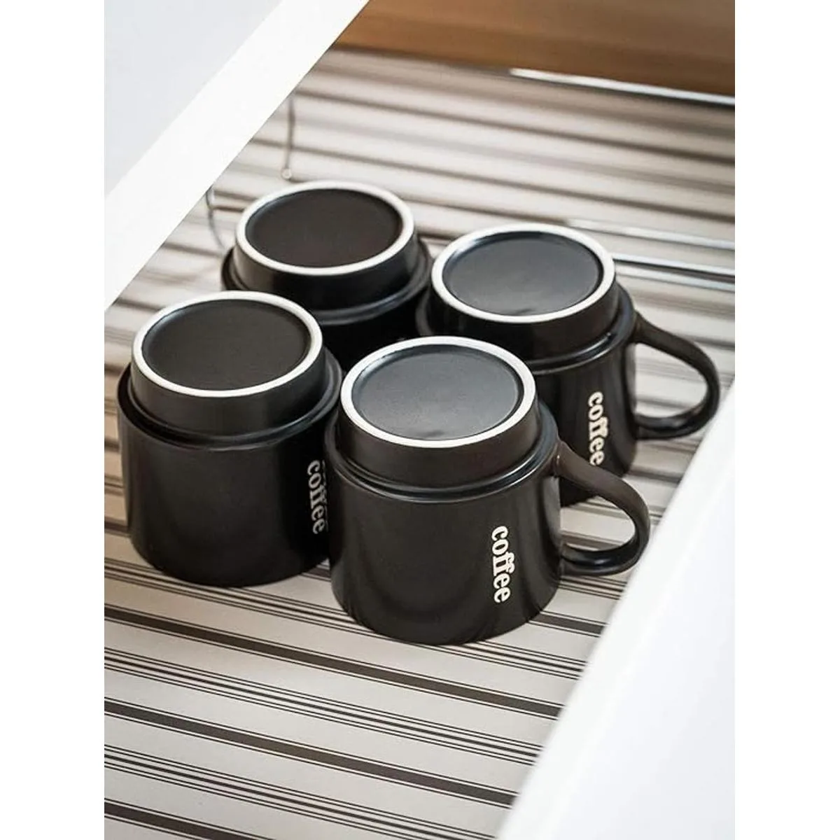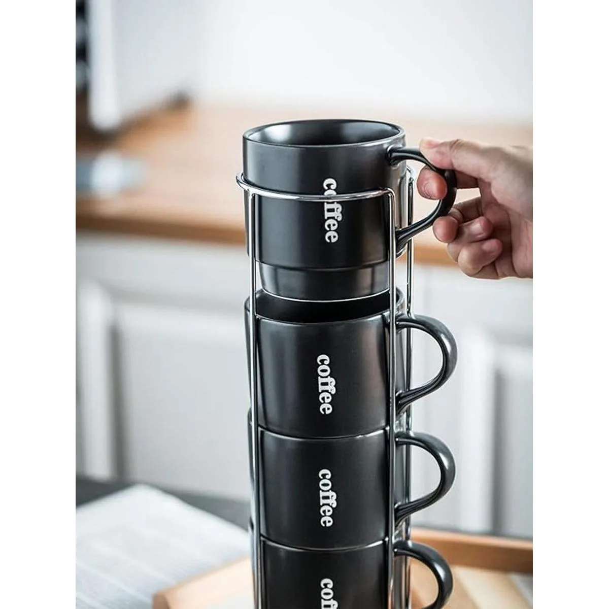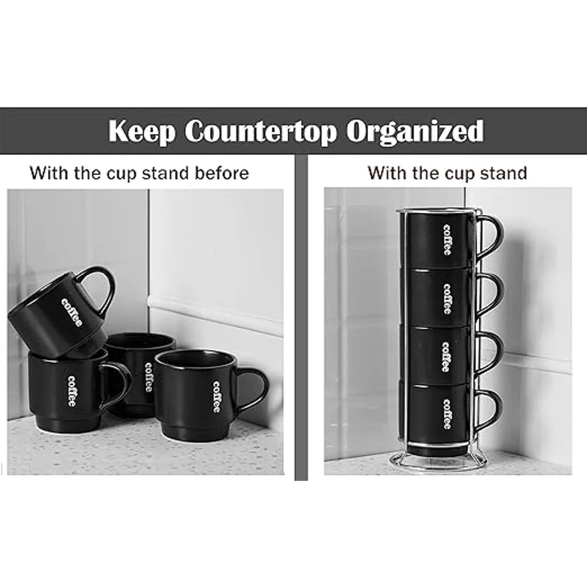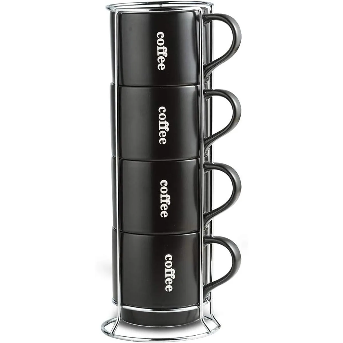 LAUCHUH Juego de 4 tazas de café apilables con estante