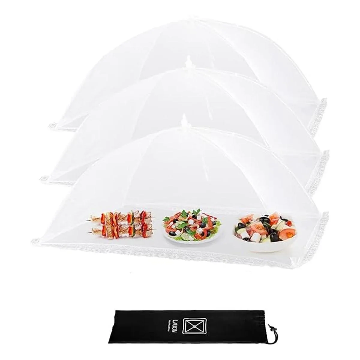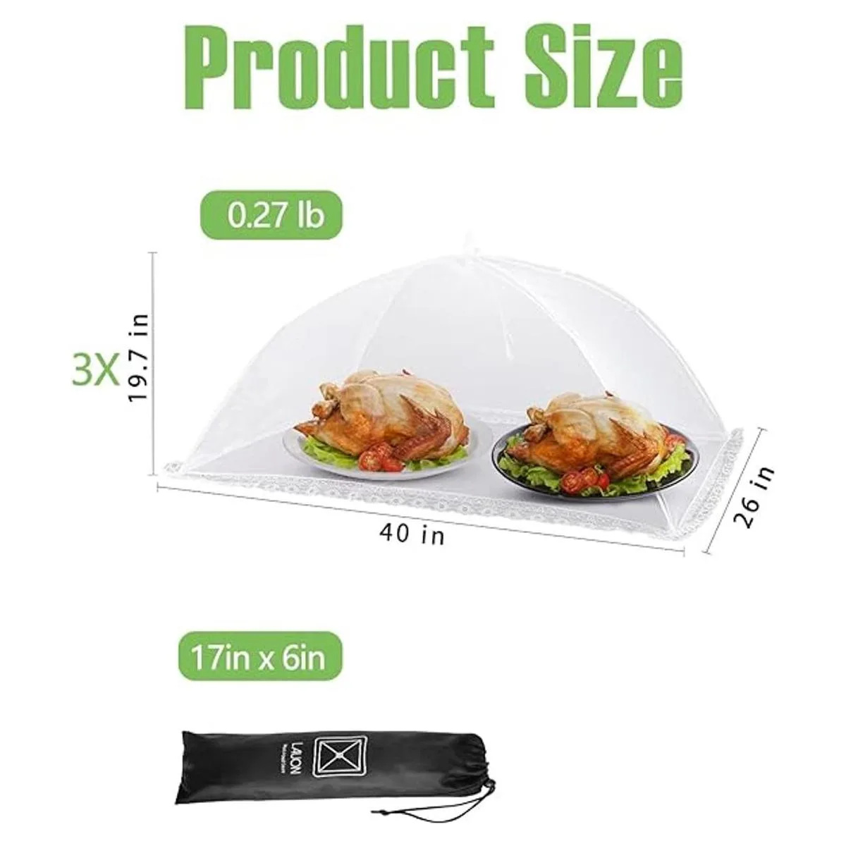 Lauon Cubierta extra grande para alimentos, 3 jumbo 40 x 26 pulgadas, tienda de campaña de malla blanca, tienda de campaña emergente, red de patio para acampar al aire libre, picnic, fiestas, barbacoa, plegable y reutilizable
