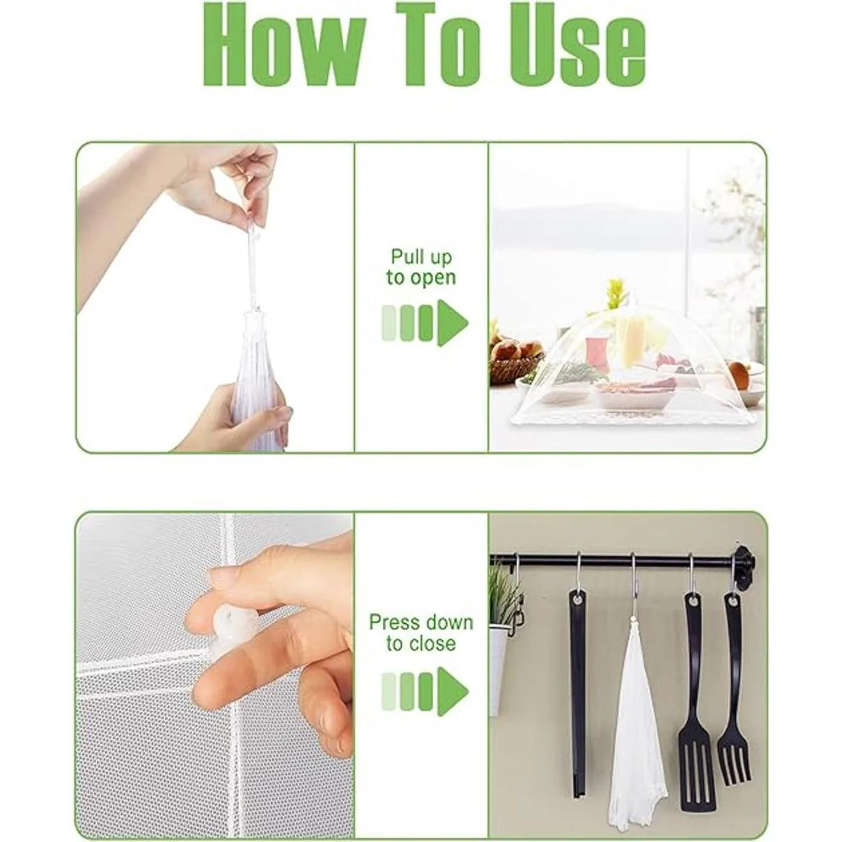 Fácil de abrir y plegar: esta funda de alimentos para exterior es plegable y reutilizable, bonito diseño inteligente de paraguas es extremadamente fácil de abrir y plegar para almacenamiento, fácil de limpiar, lavable a mano, cuando la comida se fija en ellos, simplemente enjuaga en un poco de agua fría, sumerge en agua tibia y jabón, abre y seca al aire.