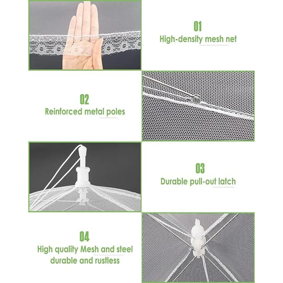 Protector de plantas de jardín: la cubierta de malla desplegable Lauon también puede proteger la planta mientras crece, puede cubrir las plántulas para que el saltamontes, pájaros, caracoles y babosas no puedan pasar por estas cubiertas de malla para alimentos al aire libre. Esta cubierta de alimentos para paraguas para exteriores es tan ventilada y visible que el agua y el aire pueden moverse libremente.