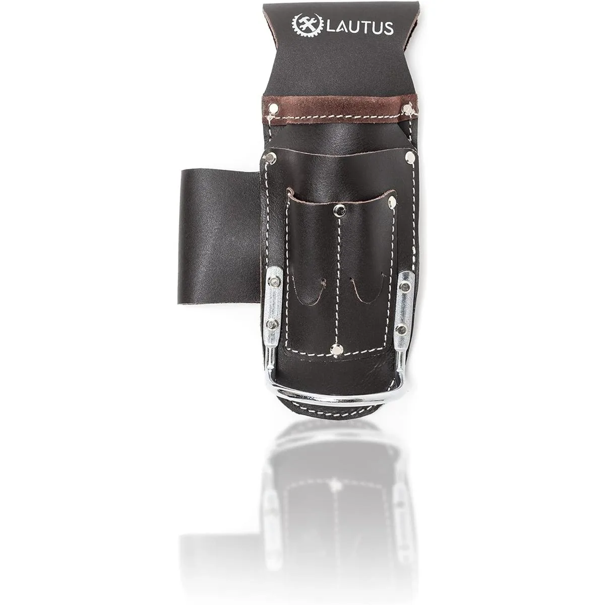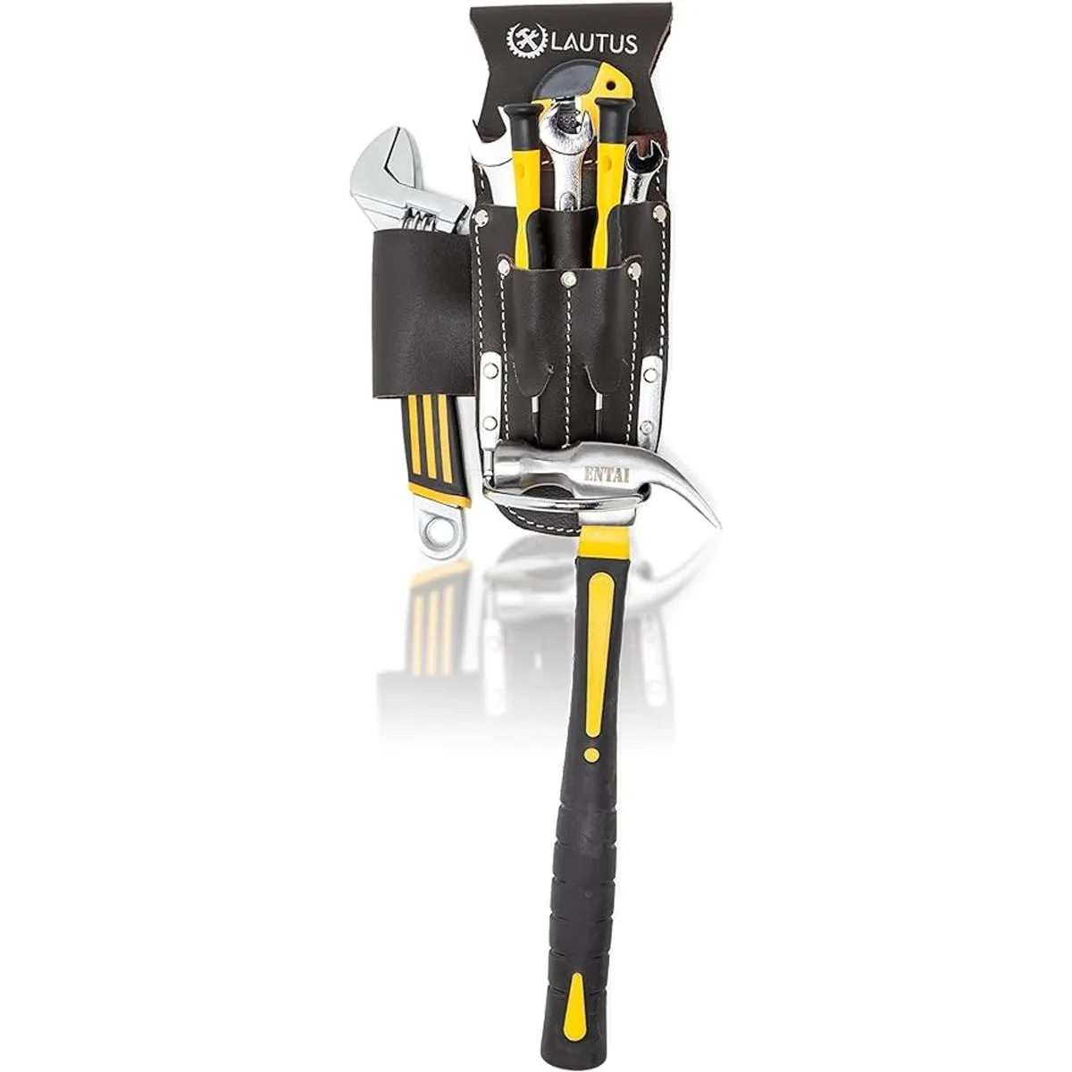 LAUTUS Alicates de 5 bolsillos y soporte para martillo, soporte de cuero curtido engrasado, carpintero, construcción, enmarcadores, manitas Heavy Duty
