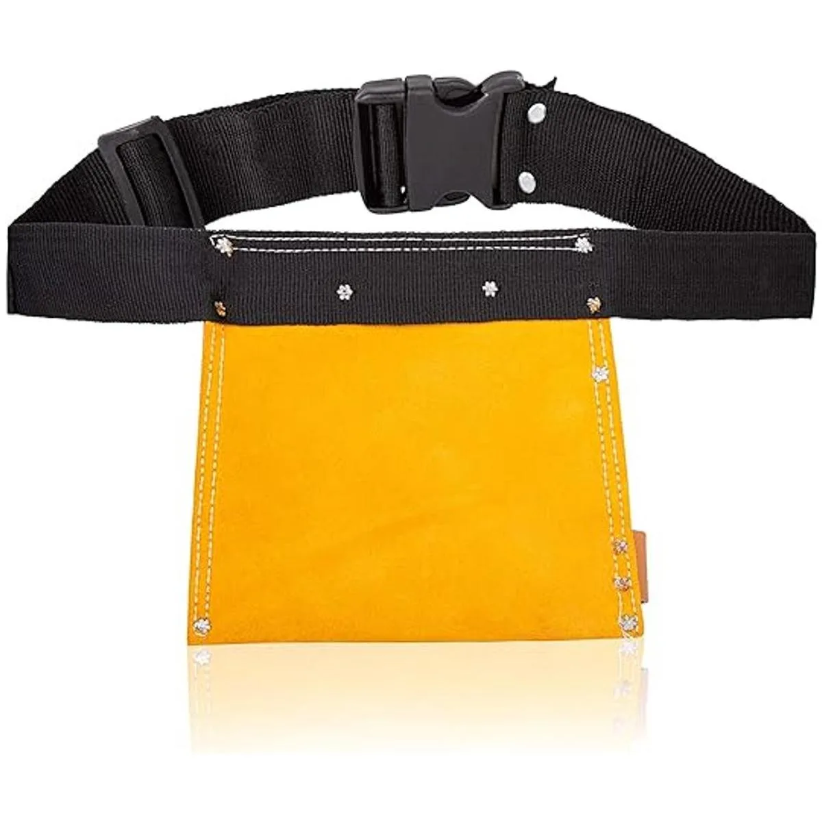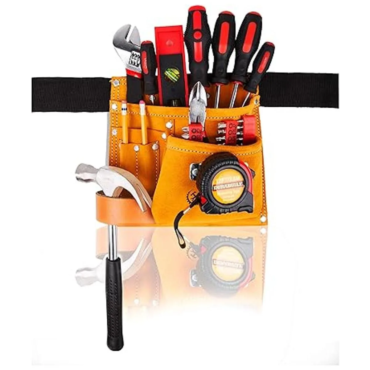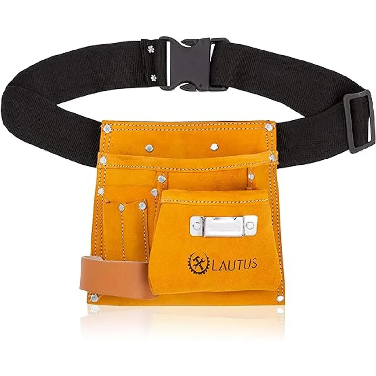 LAUTUS Bolsa de herramientas de ante y cinturón ajustable de poli 5 bolsillos Soporte de martillo de cuero Soporte de cinta métrica, grado de construcción.