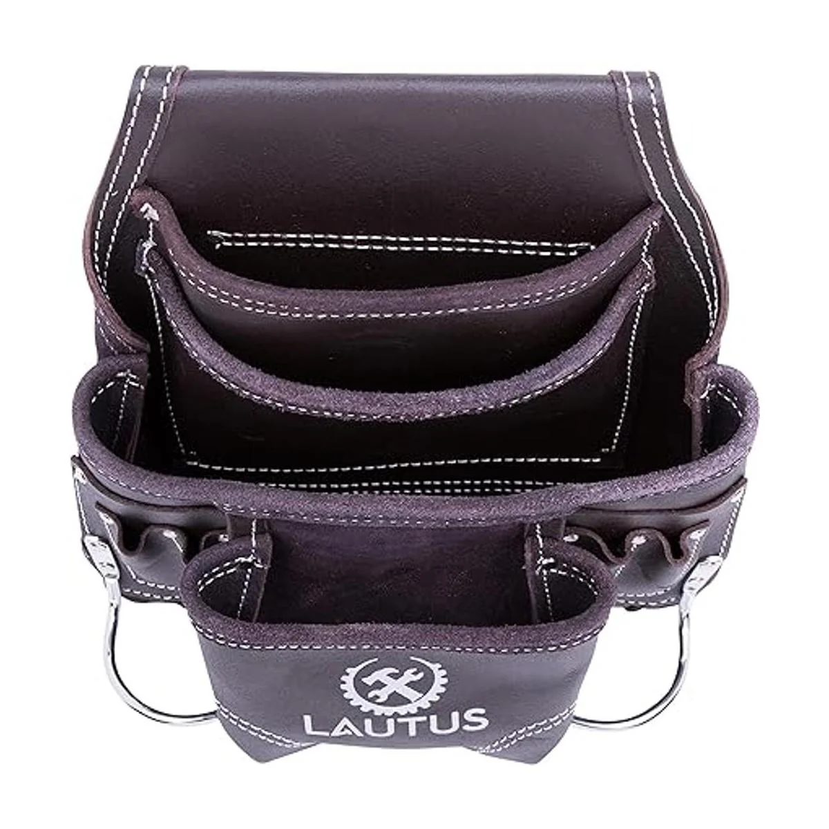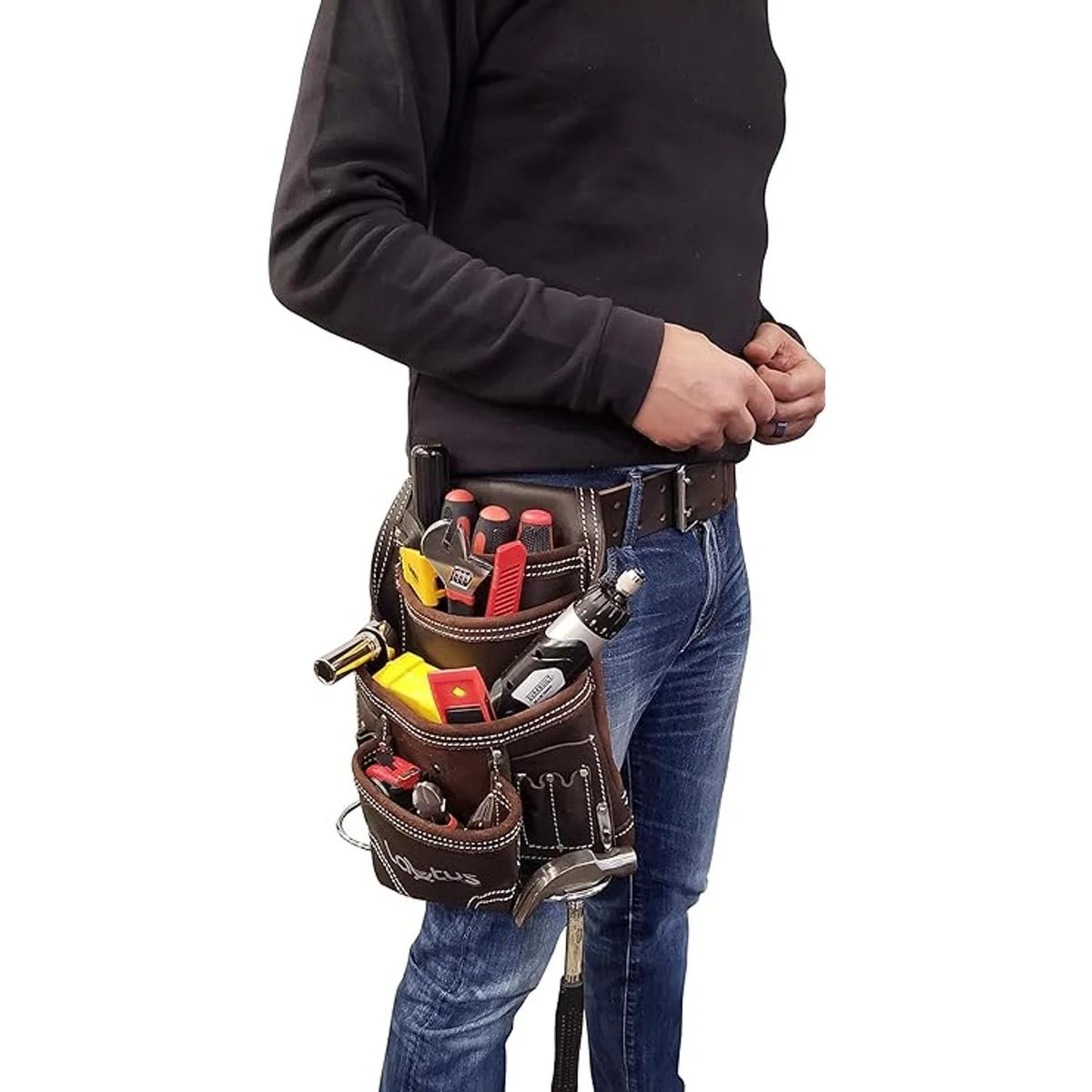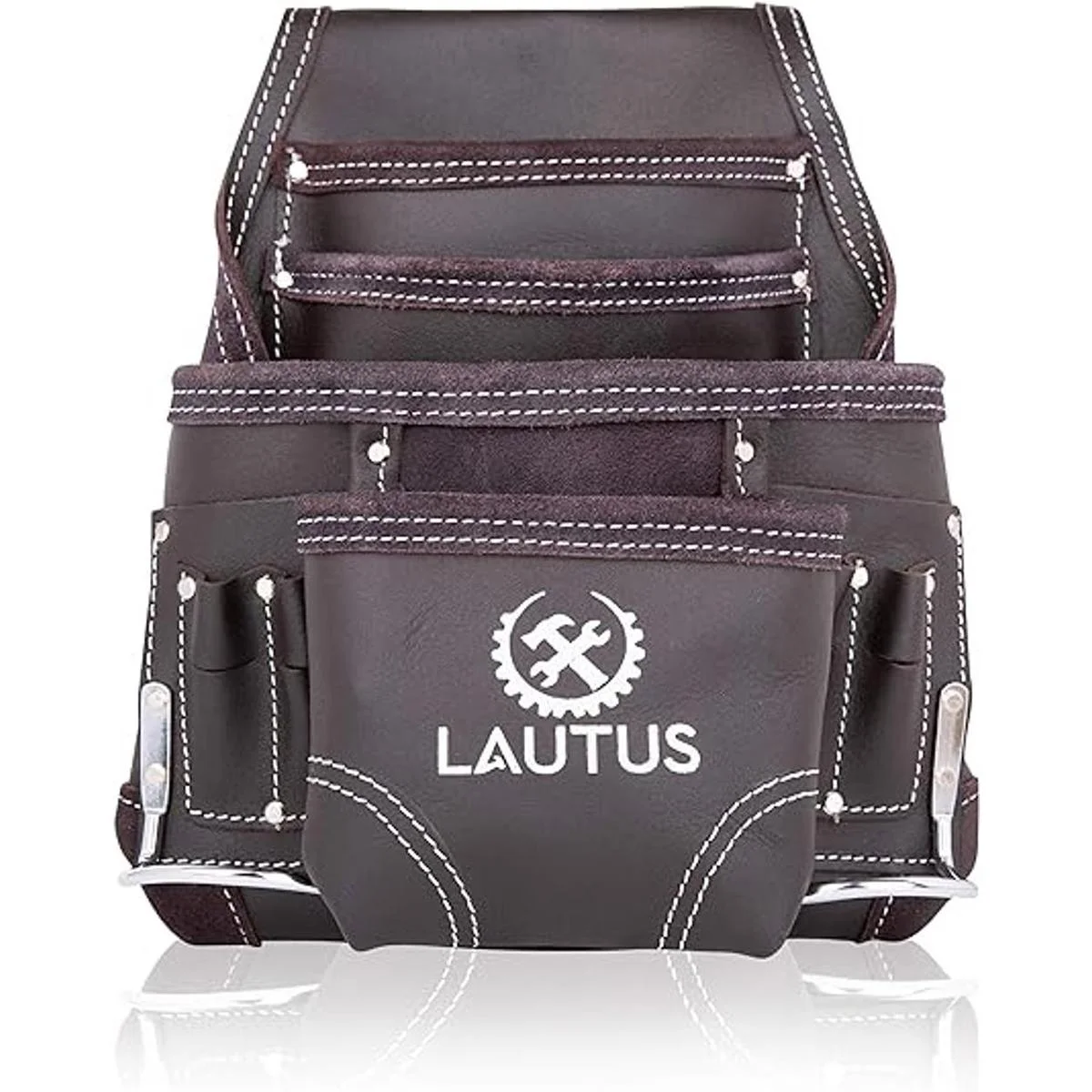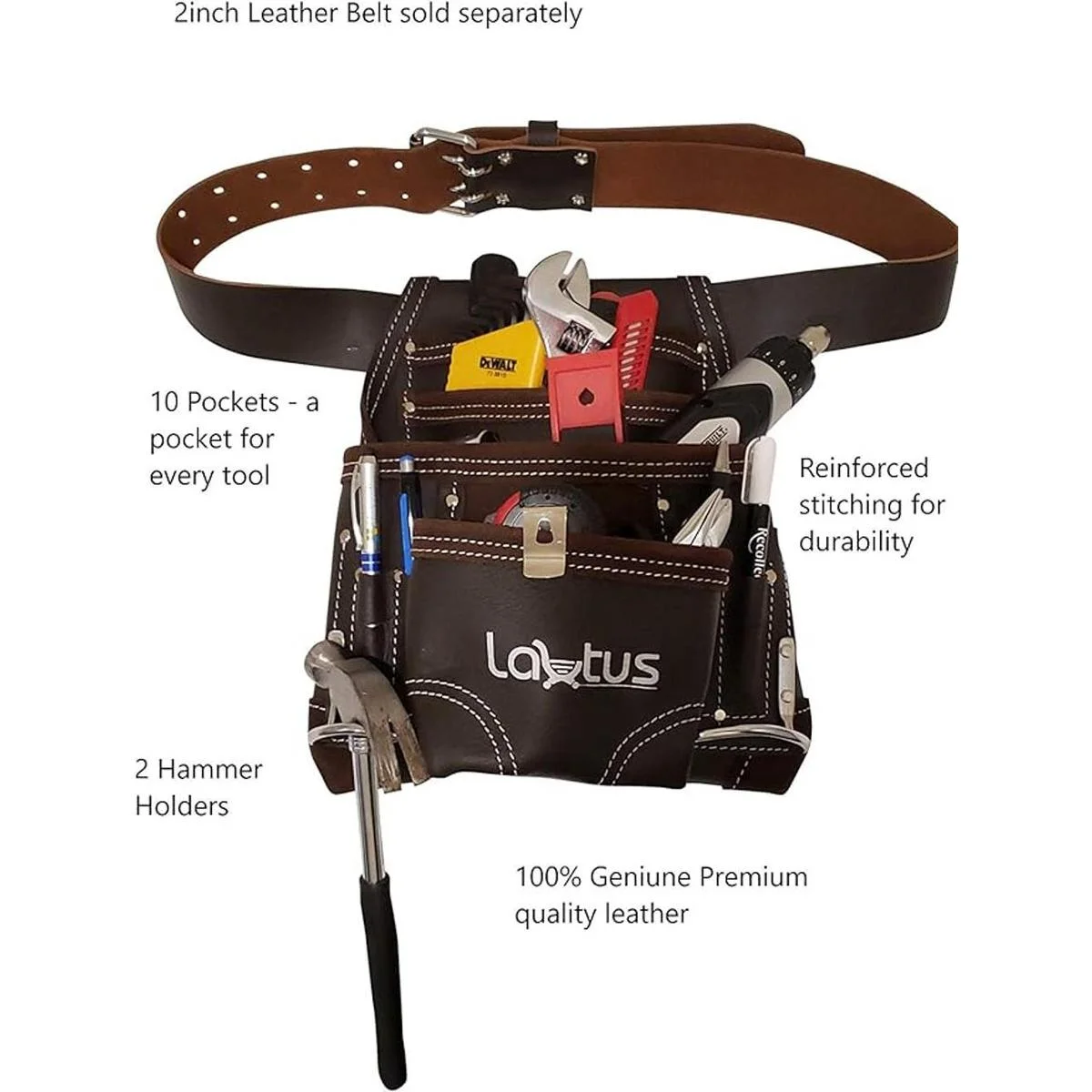 LAUTUS Bolsa de herramientas de cuero curtido con aceite, de carpintero, construcción, enmarcadores y encargados de mantenimiento, 10 bolsillos, 2 soportes para martillos,100 cuero
