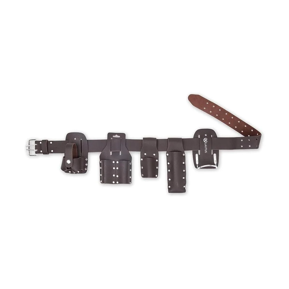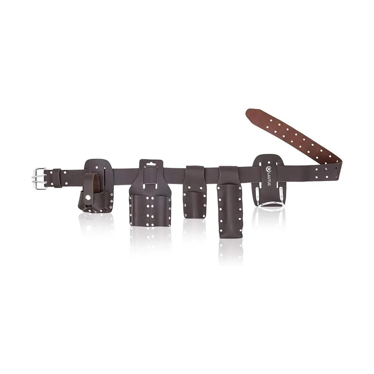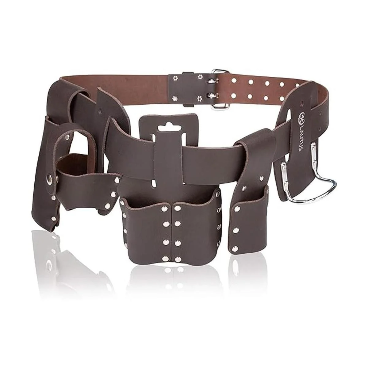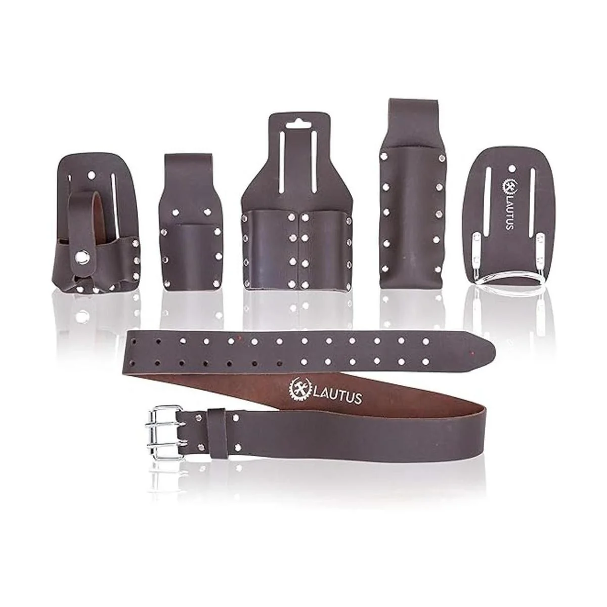 LAUTUS Cinturón de andamio Cinturón de andamio de cuero de 6 piezas, 2 pulgadas de ancho Se adapta a tamaños de cintura de 32 a 46 pulgadas Incluye 5 soportes de herramientas de andamio para sujetar de forma segura tu nivel, cinta, llaves inglesas, martillo